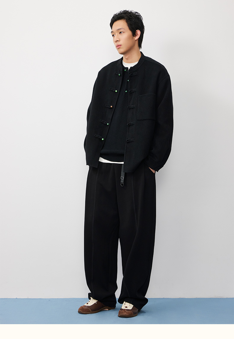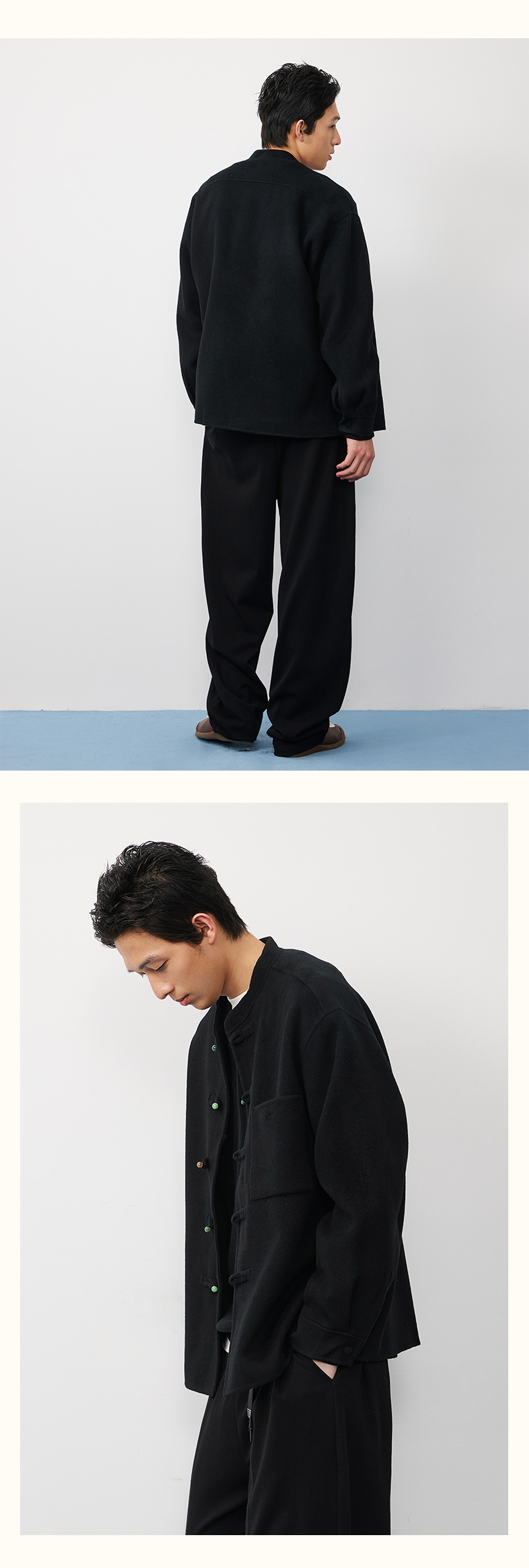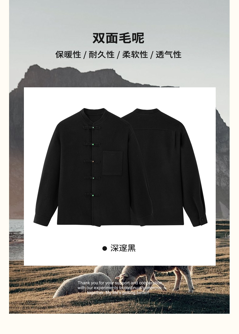 NPC潮牌100%绵羊毛新中式盘扣短款毛呢大衣休闲复古外套NP57WC39