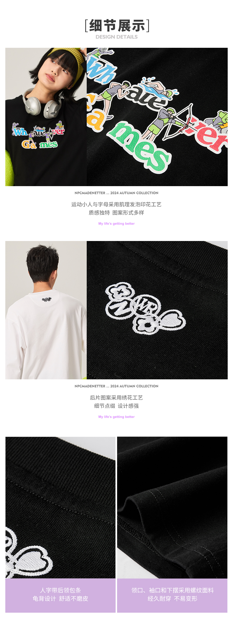 NPC潮牌运动系列重磅430G刺绣橄榄枝花卉圆领卫衣男新款NP47ST03