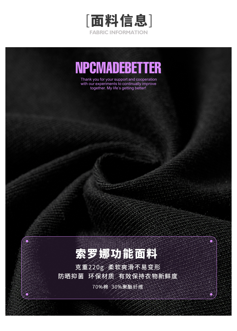 NPC潮牌夏短袖圆领索罗娜T恤时尚夏季紫外线印花潮流双色NP56TE91