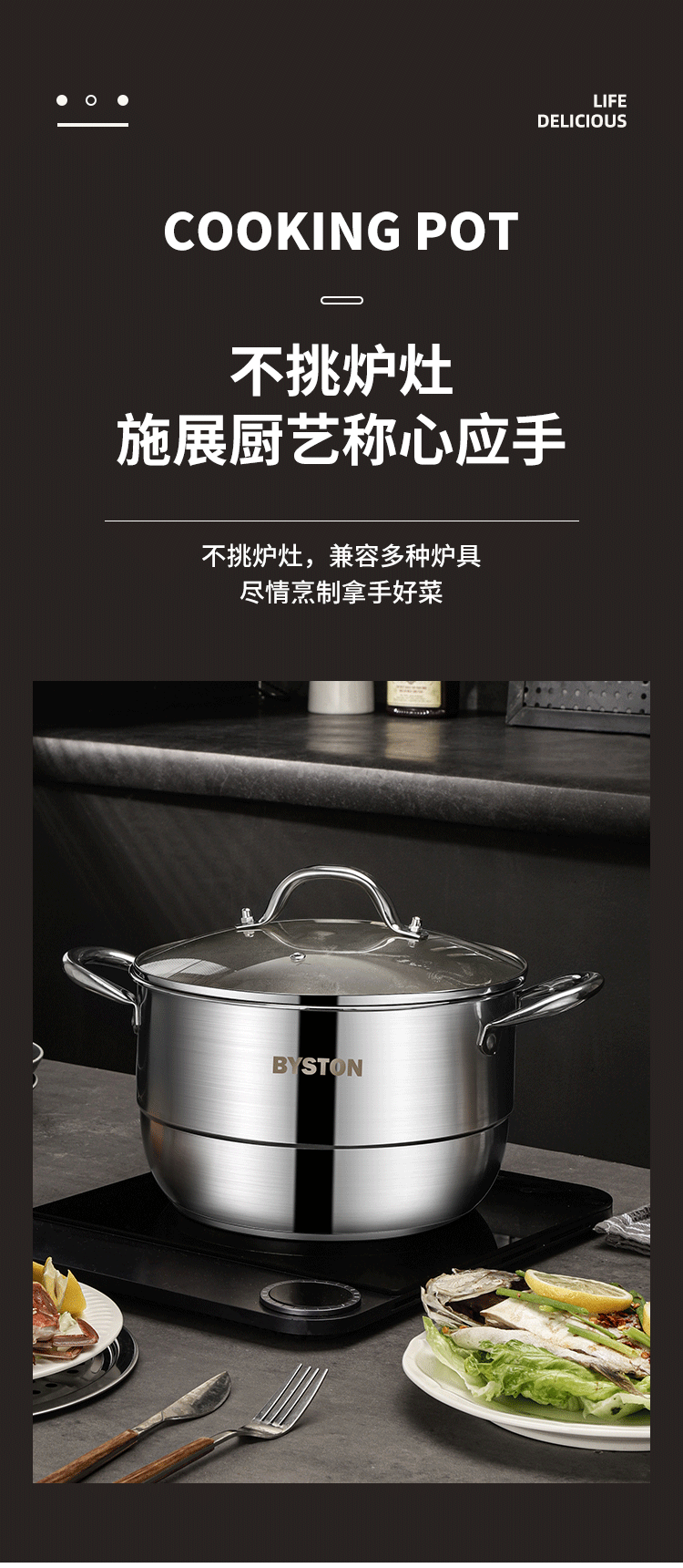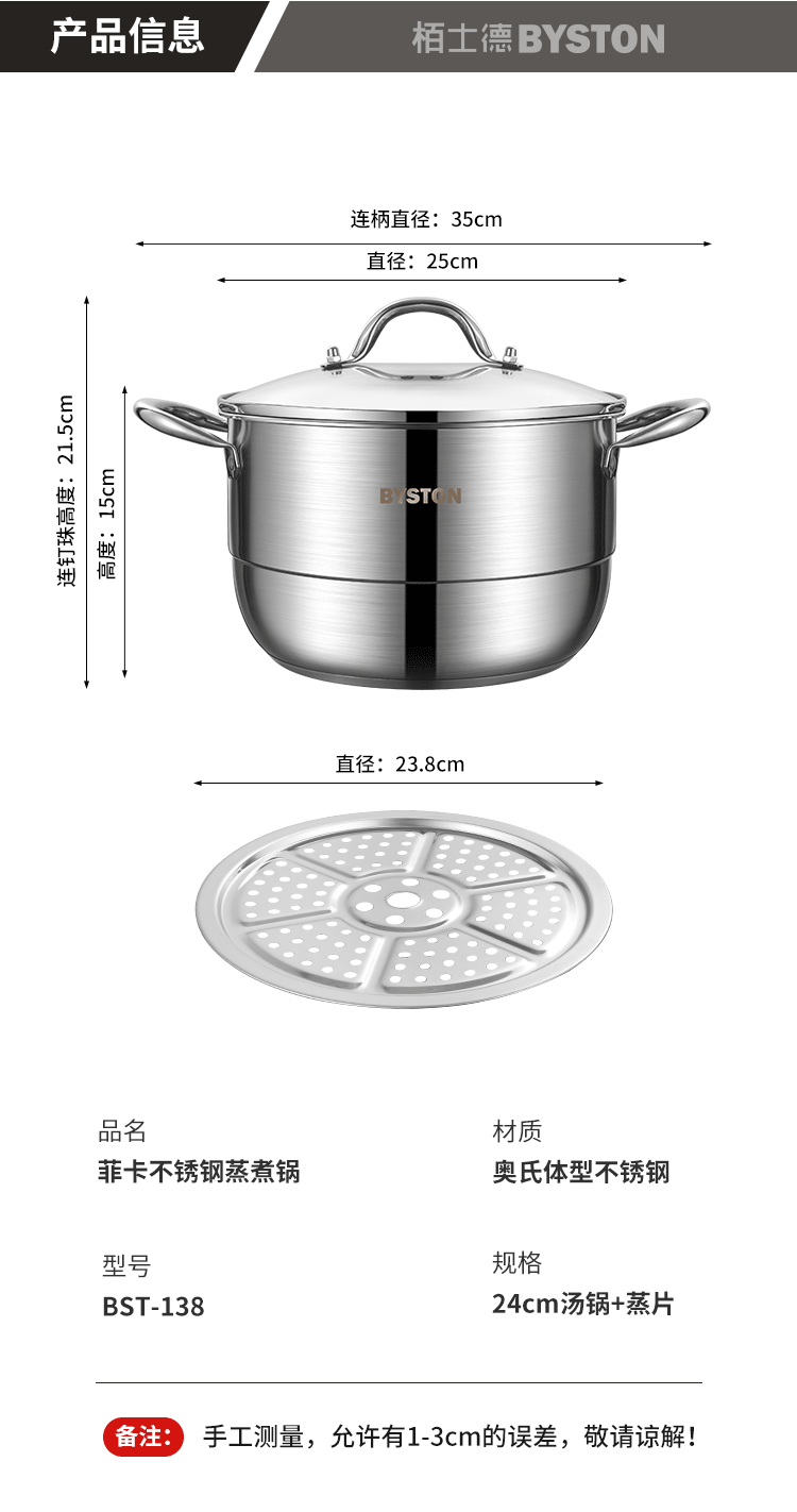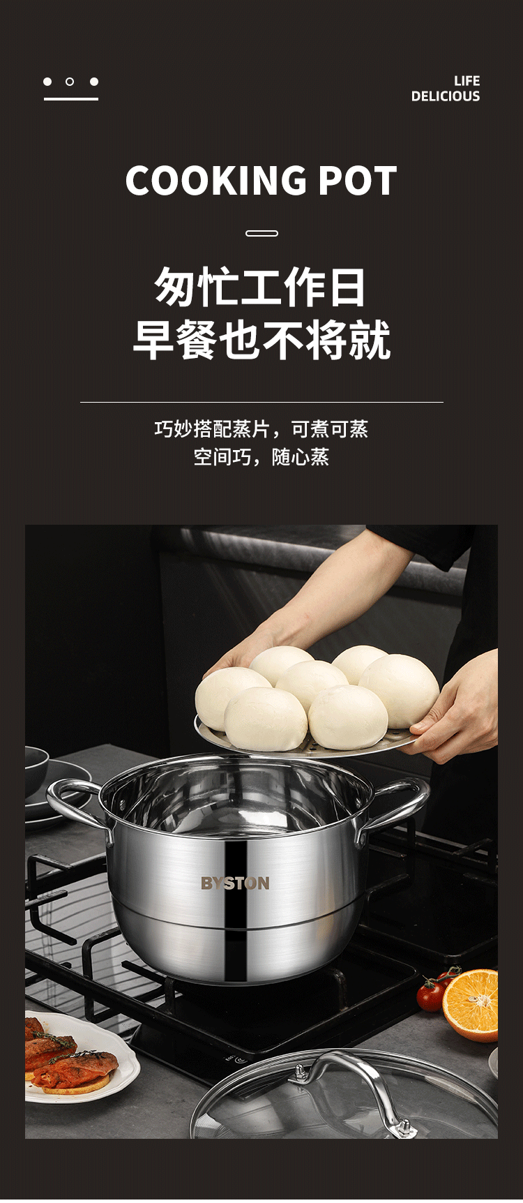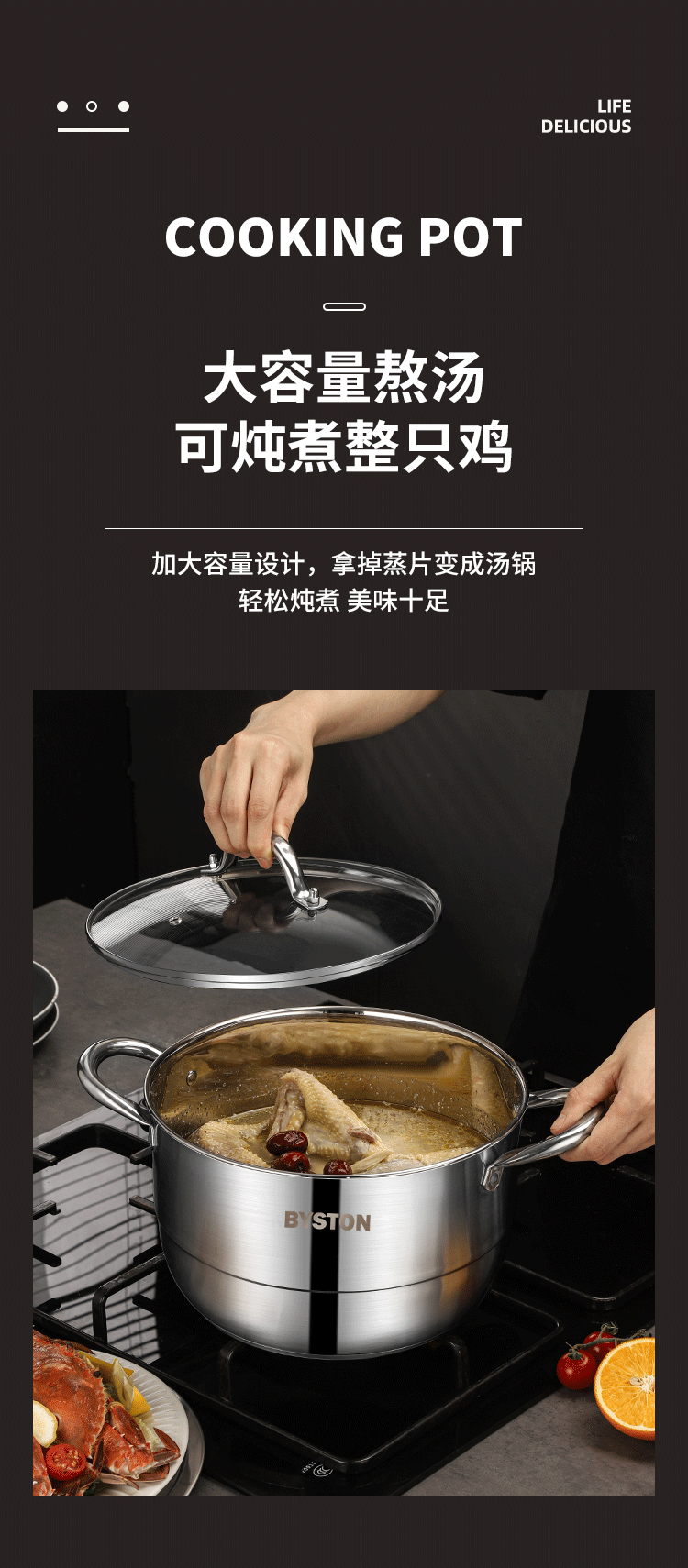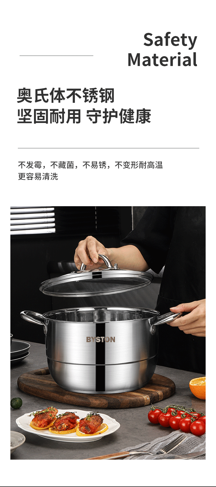 TY栢士德BYSTON 菲卡不锈钢蒸煮锅 BST-138 24CM汤锅+蒸片【鲜享1.0】