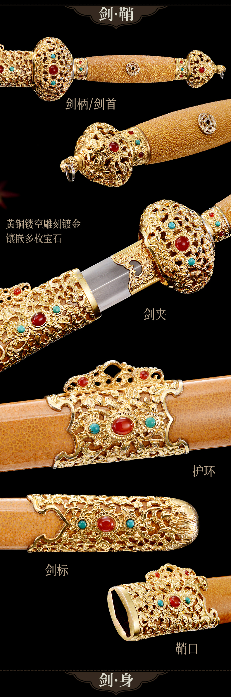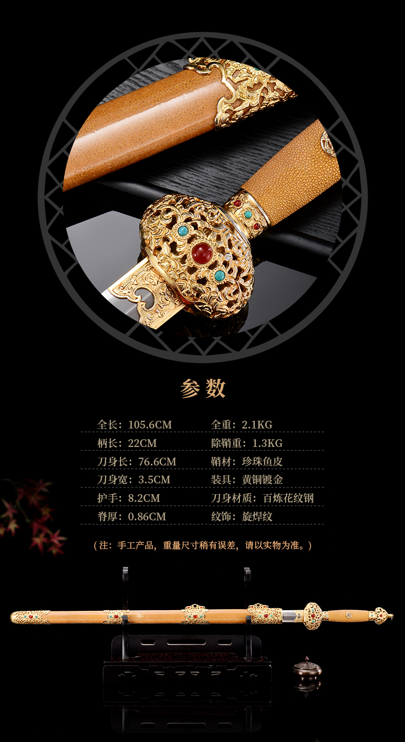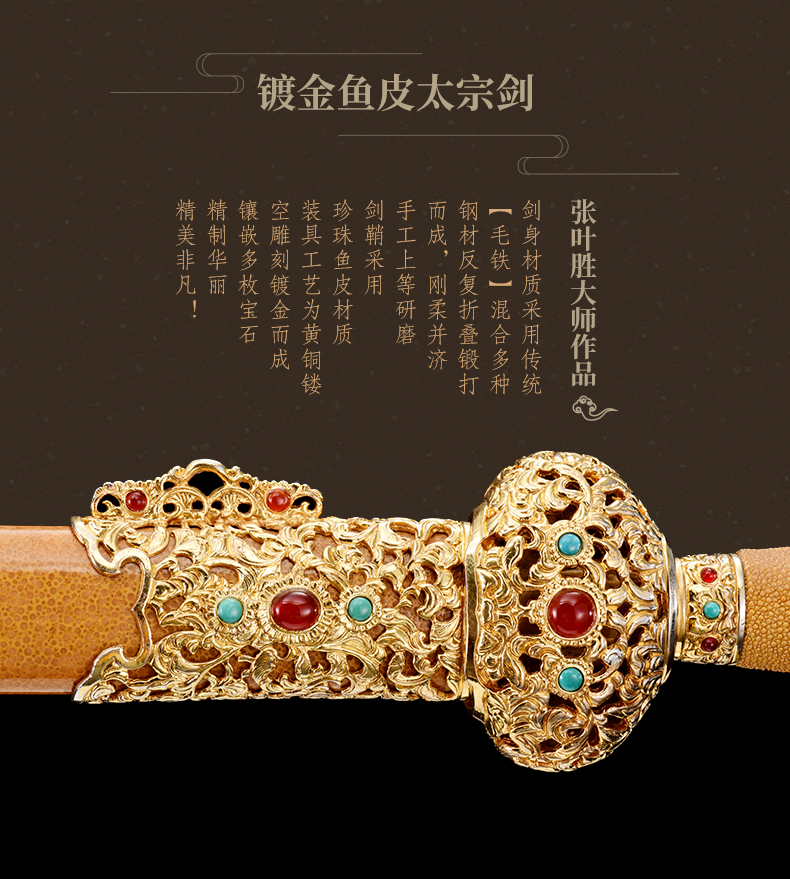 镀金鱼皮太宗剑-张叶胜大师作品(未开刃)