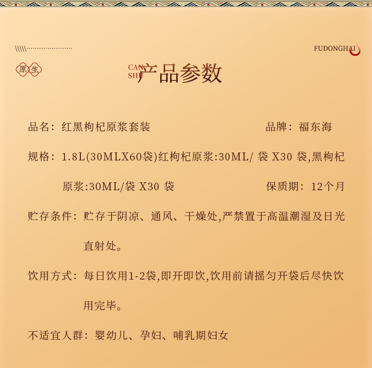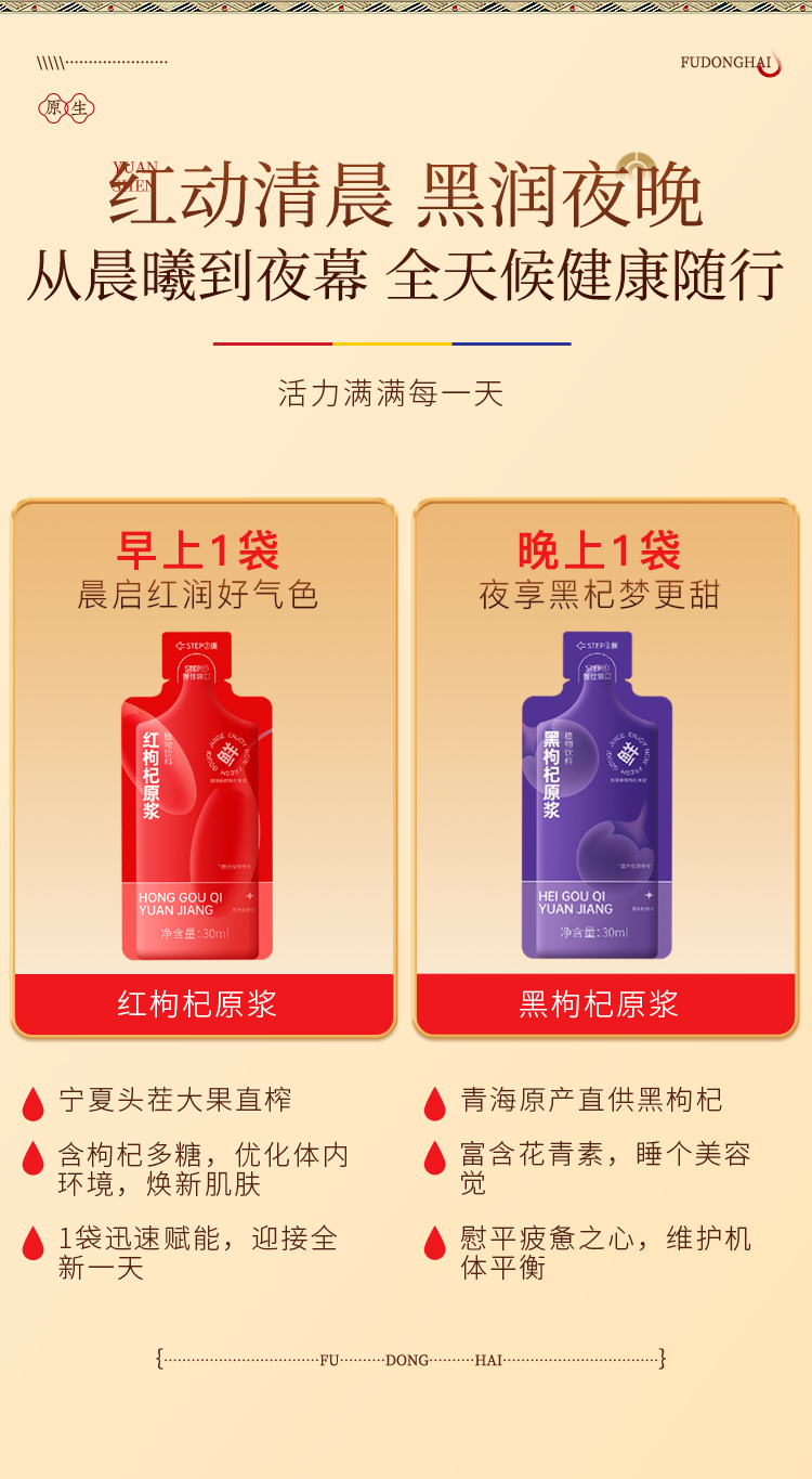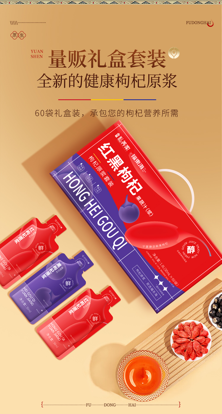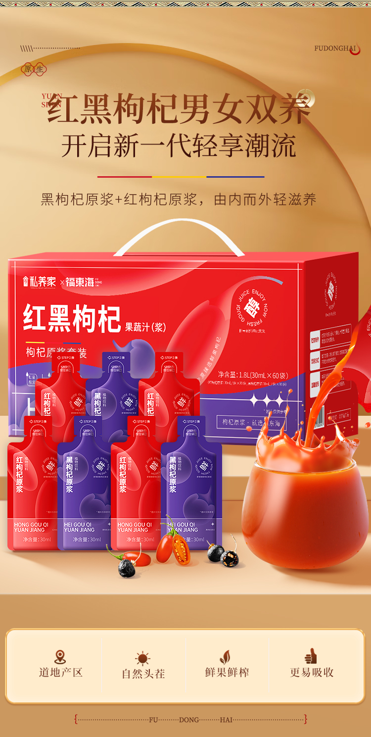 福东海 红黑枸杞原浆礼盒1800ml(月套餐60袋)早上红晚上黑 宁夏中宁头茬红枸杞水青海黑枸杞原汁液礼物送长辈