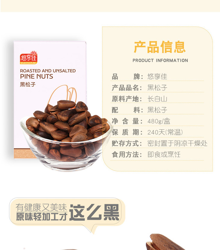 【悠享佳】黑松子480g手剥开口东北特产野生原味坚果孕妇休闲零食干果