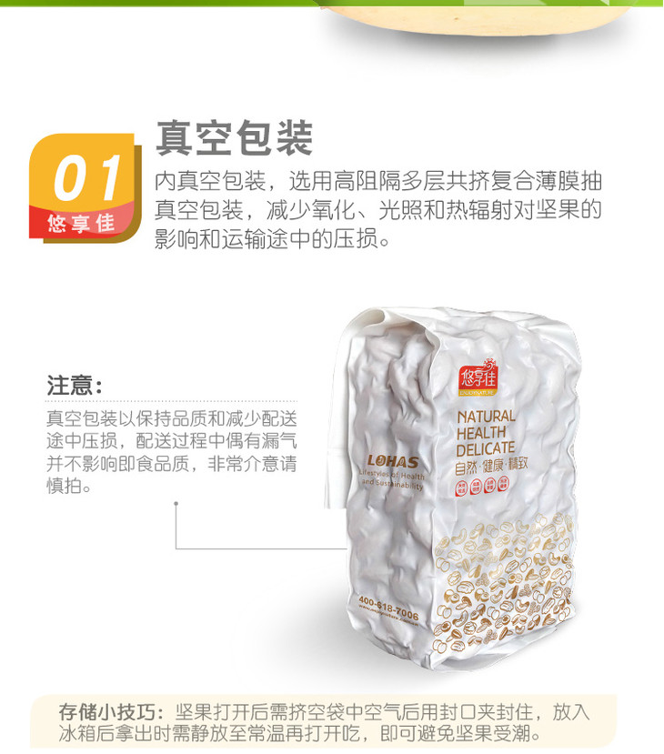 悠享佳 腰果仁 巴旦木仁 南瓜子仁 每日坚果原味烘焙生干烘焙熟坚果孕妇炒货零食