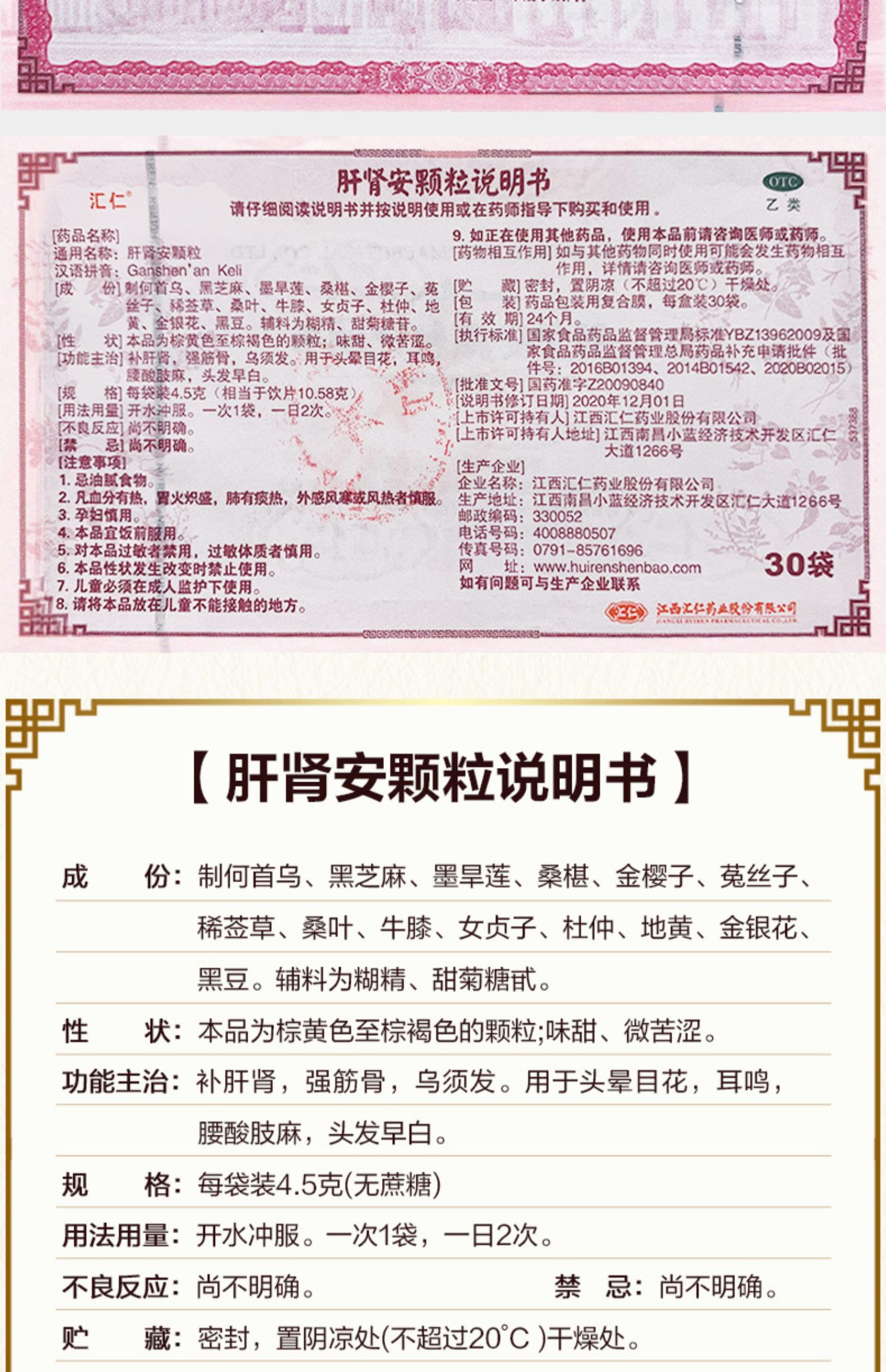 多得六味】汇仁 肝肾安颗粒30袋/盒 头发早白晕眼花耳鸣腰酸肢麻
