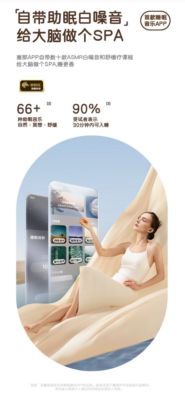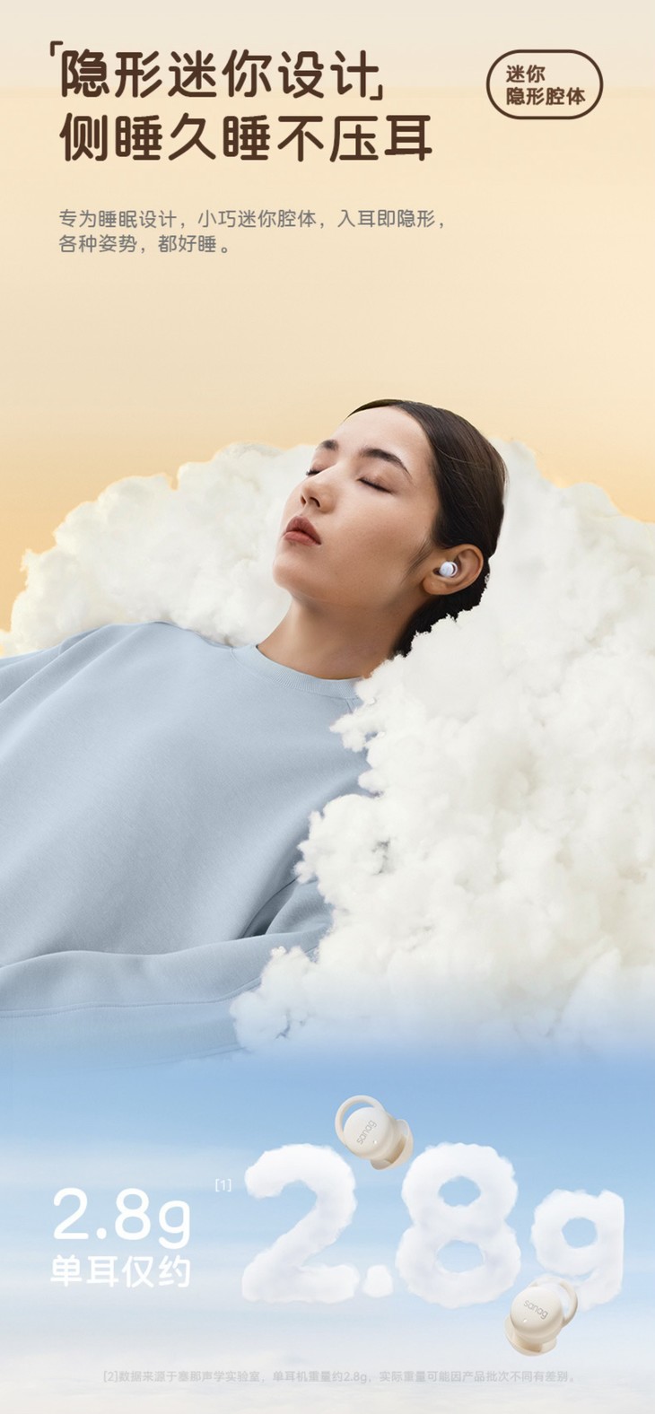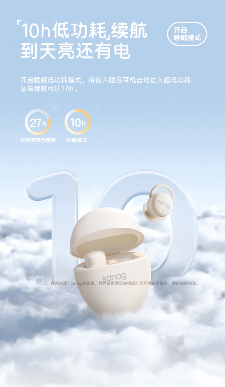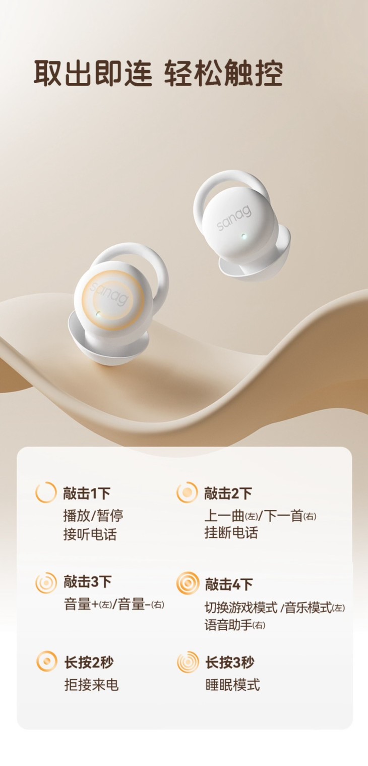 当然,它不止能在睡觉时使用。高清通话功能能清晰拾取人声,触控操作一键即可切换,音质同样出色,再加上大功率振膜,更能重现录音棚水准的音质,让聆听仿佛身临其境。专利蓝牙闪连技术保证传输稳定,睡眠模式下续航可达10小时,搭配充电仓更能达到27小时,不用频繁充电哦!