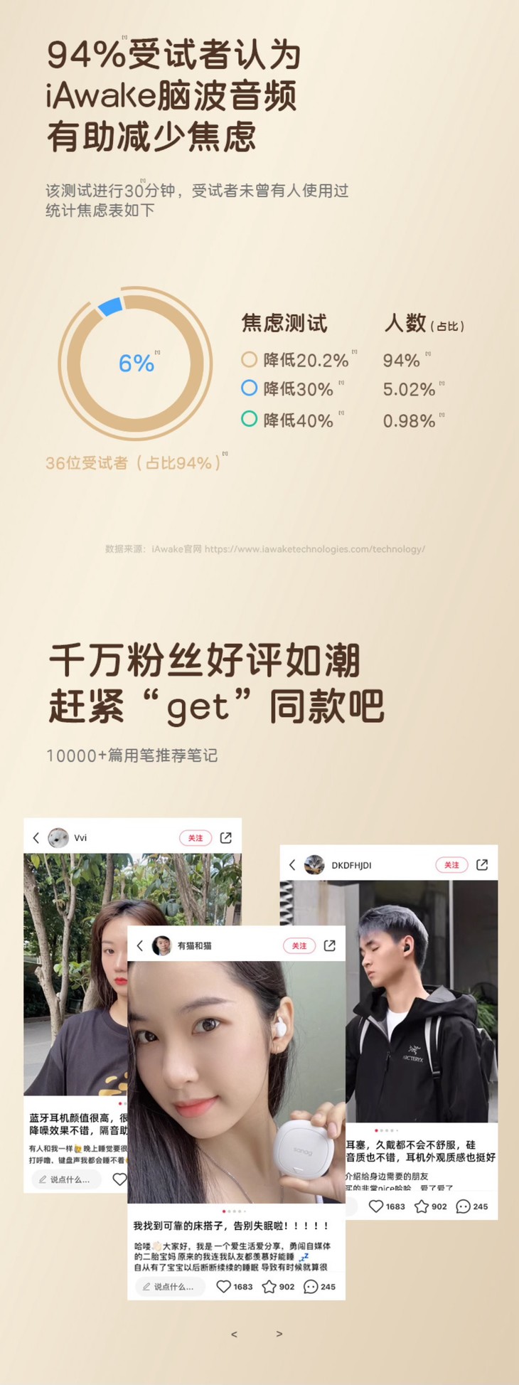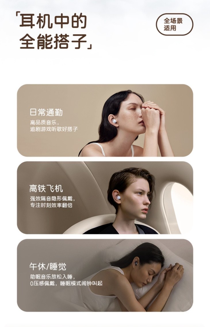 日常通勤时听音乐、追剧,高铁、飞机上需要专注工作或休息,还是午休、睡觉时听助眠音乐放松入睡,睡眠豆都能完美胜任!唯一就是,耳洞太小的慎重,只有一个尺寸,我个人是觉得略略大,塞起来有点费劲,能再小点就更好了!