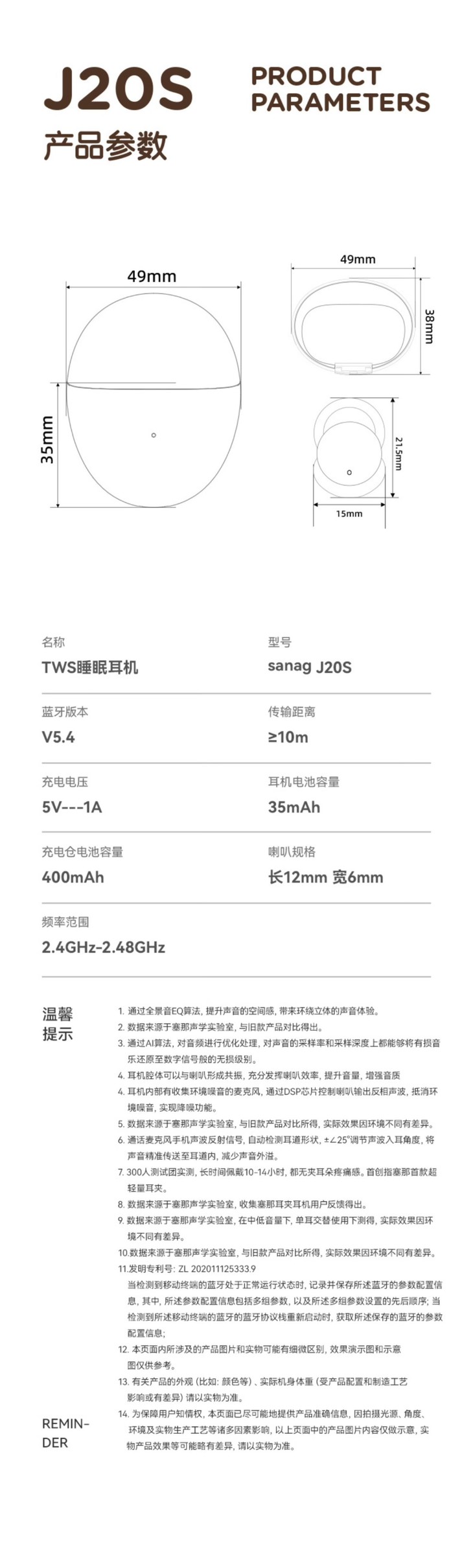 [屁侠推荐] 塞那sanag TWS睡眠耳机J20S蓝牙降噪睡觉专用侧睡不压耳入耳式助眠无线