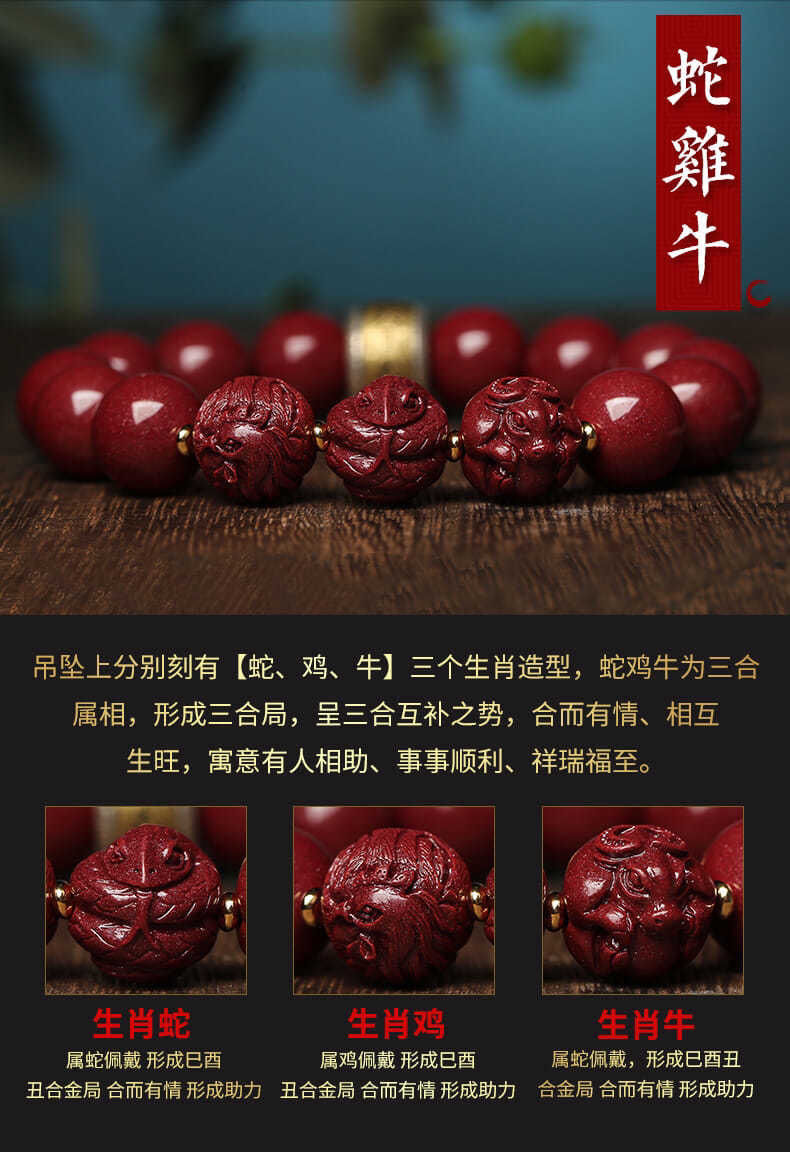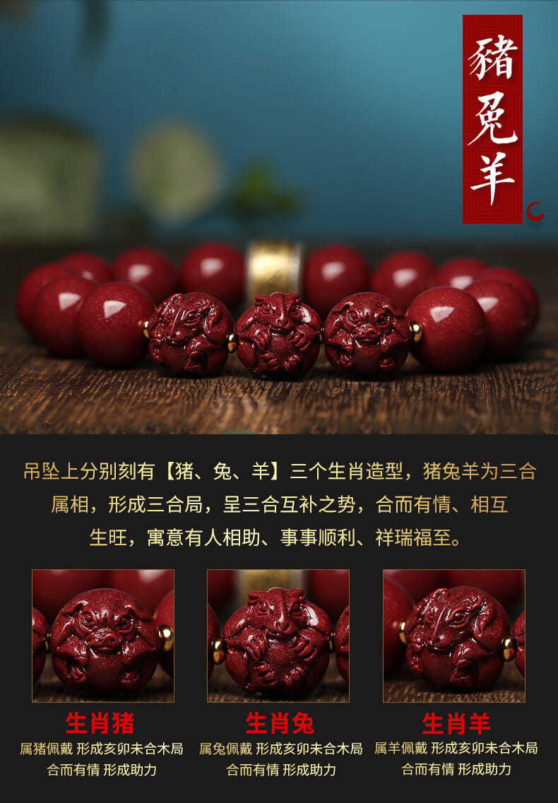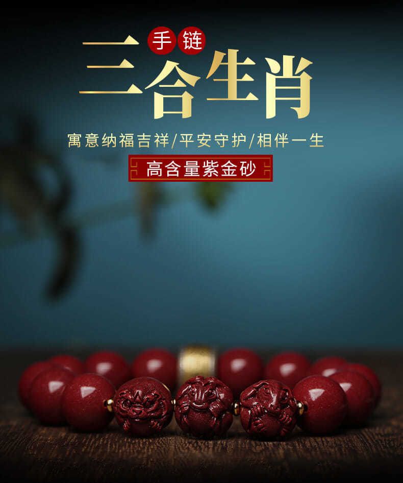 本命年朱砂三合男女手链牛年紫金砂生肖情侣手串银护身符辟邪转运
