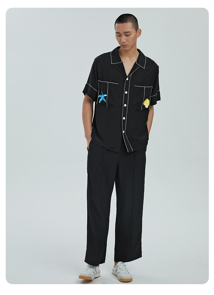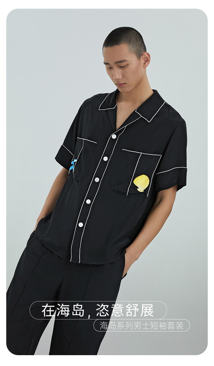 桑罗海岛系列撞色男士睡衣家居服套装反做特殊工艺