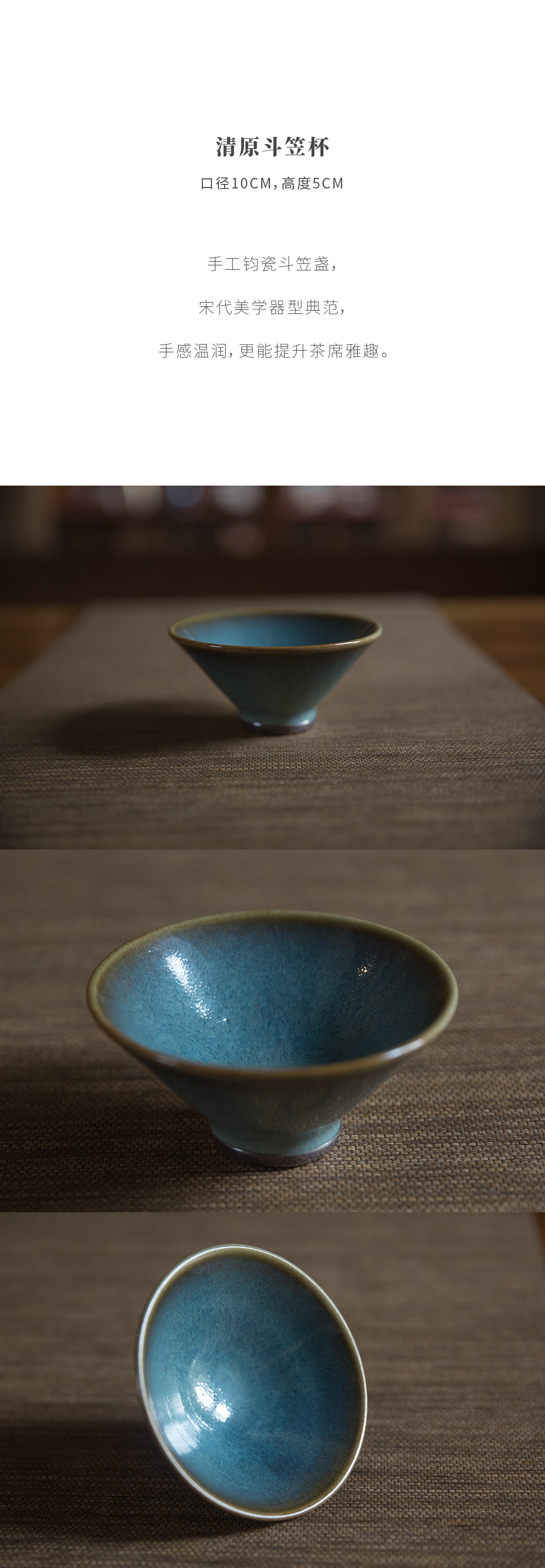 清原斗笠杯 一个 手工钧瓷斗笠盏,口径10cm高度5cm,宋代美学器型典范,手感温润,更能提升茶席雅趣。