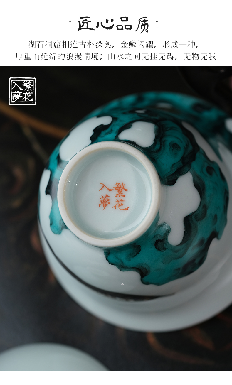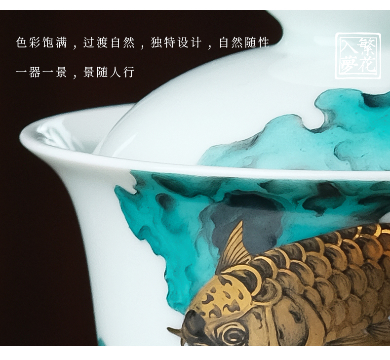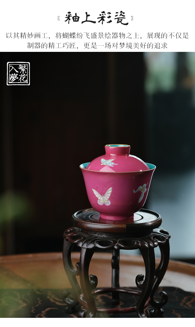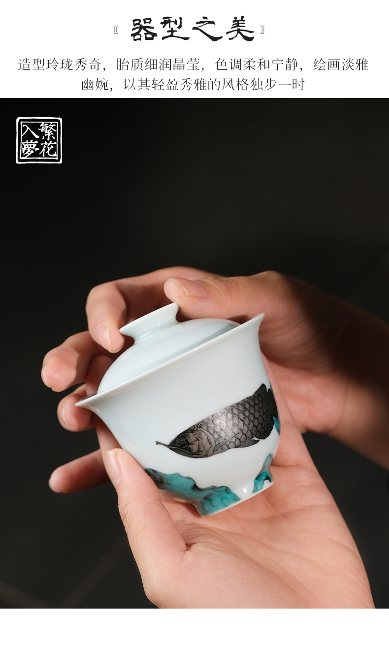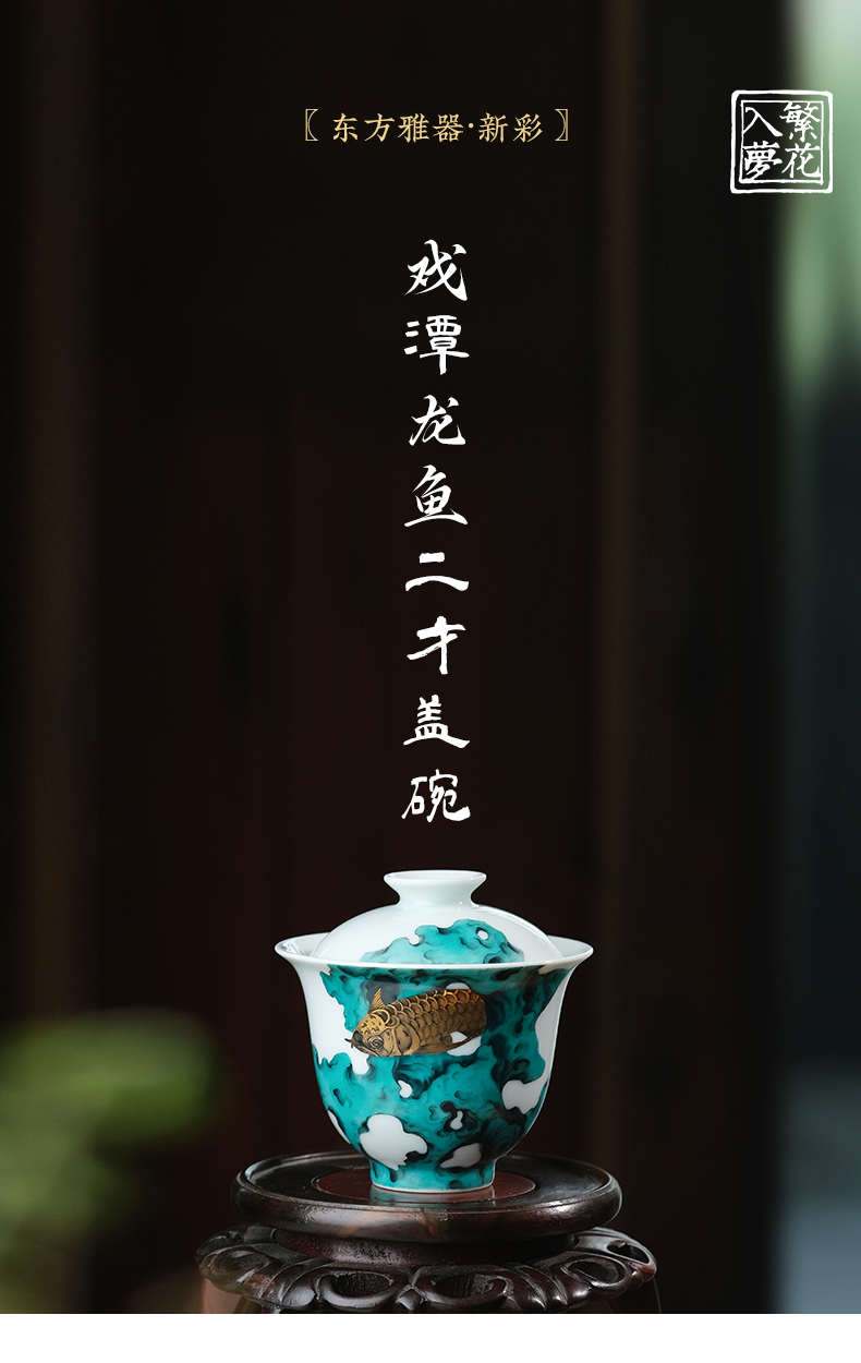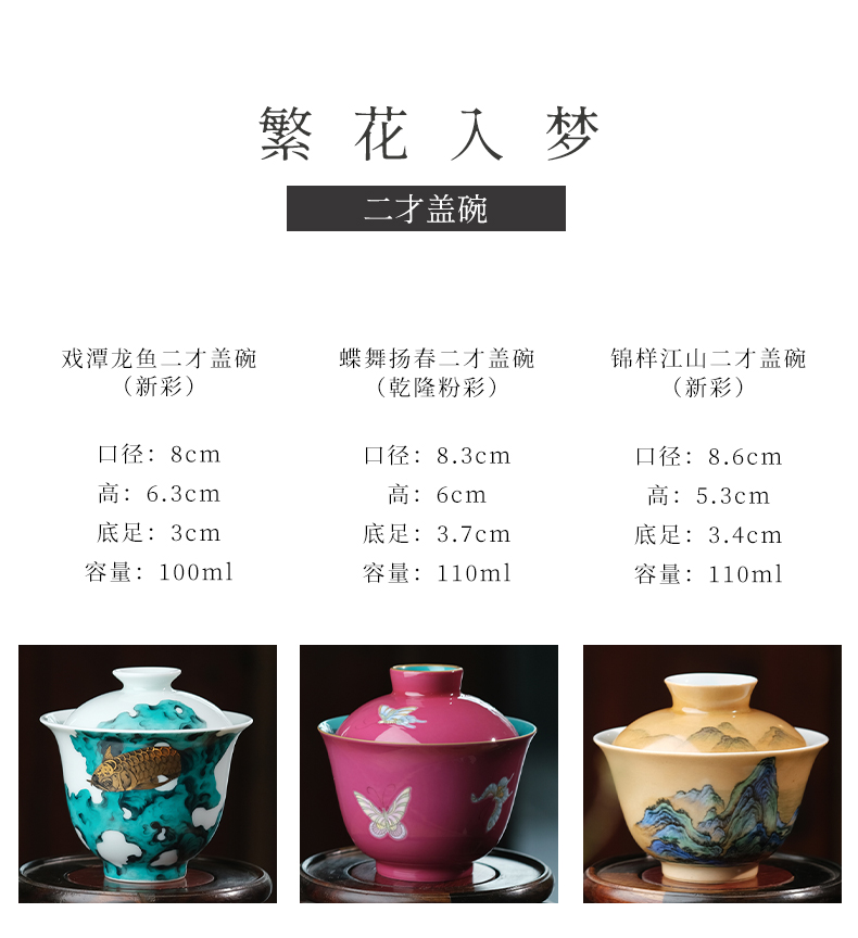 繁花入梦锦样江山二才盖碗 戏潭龙鱼二才盖碗 蝶舞扬春二才盖碗(缺货)