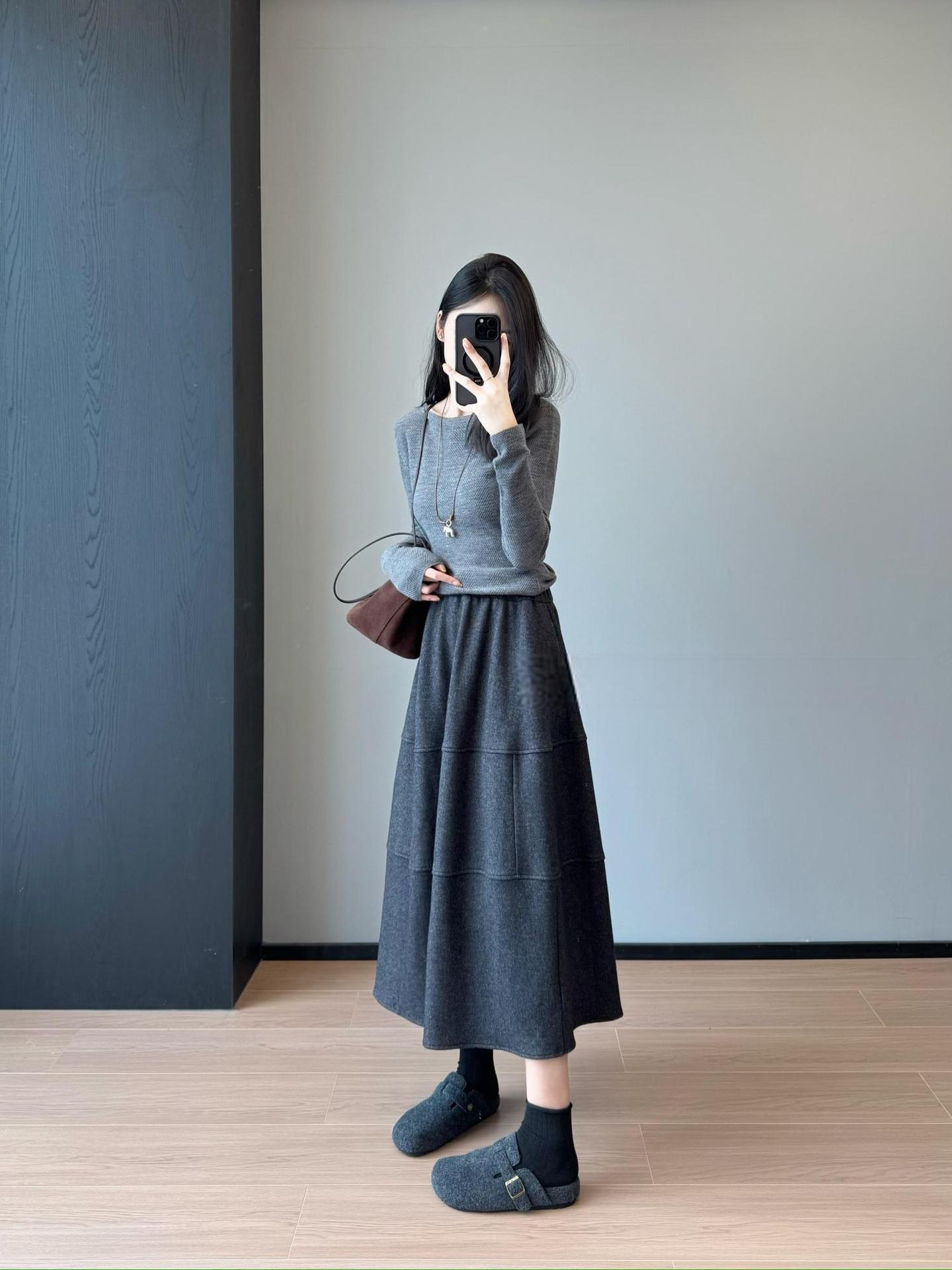 这个裙型 王炸秋冬 巨百搭,面料版型好的没的说