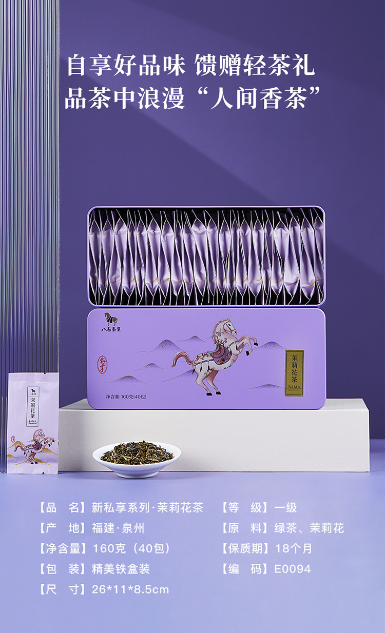 【99元任选2罐】八马茶业丨特级茉莉花茶百福1号罐茉莉花茶60g