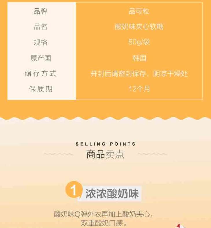 韩国进口品可粒酸奶夹心软糖(多口味)50g