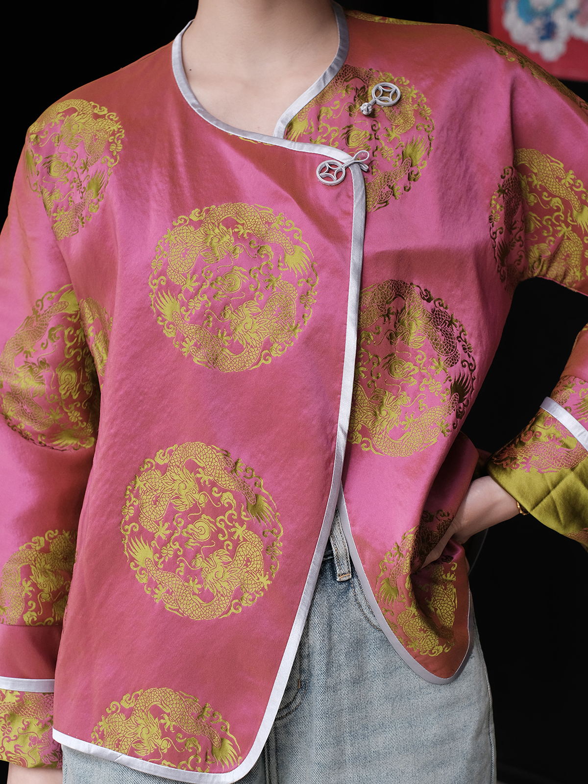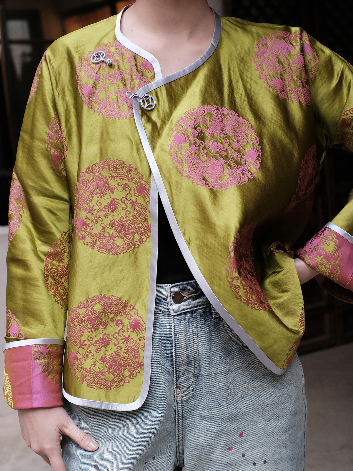 微瑕秒杀 |盛唐牡丹 |色织真丝花锦缎团龙纹外套[特价品](特殊商品不退不换)