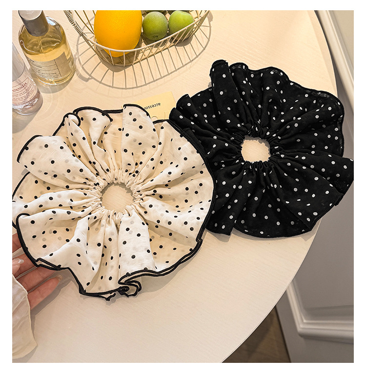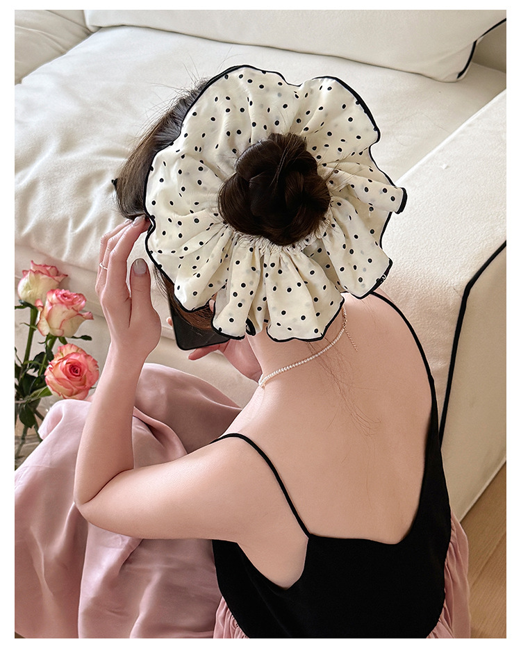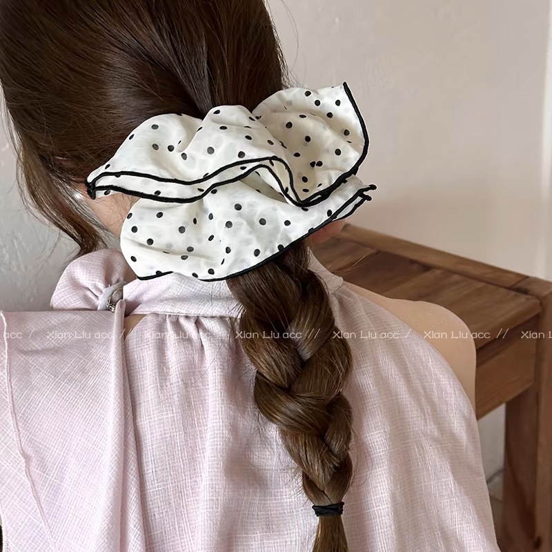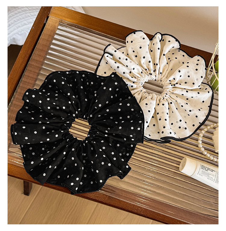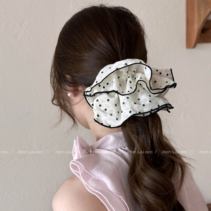 【敲好看❗️波点双层黑色大肠发圈】超仙百搭缎面褶皱发箍,网红新款扎头发头绳女,高级感头花发饰,韩甜美气质发卡外出百搭时尚L