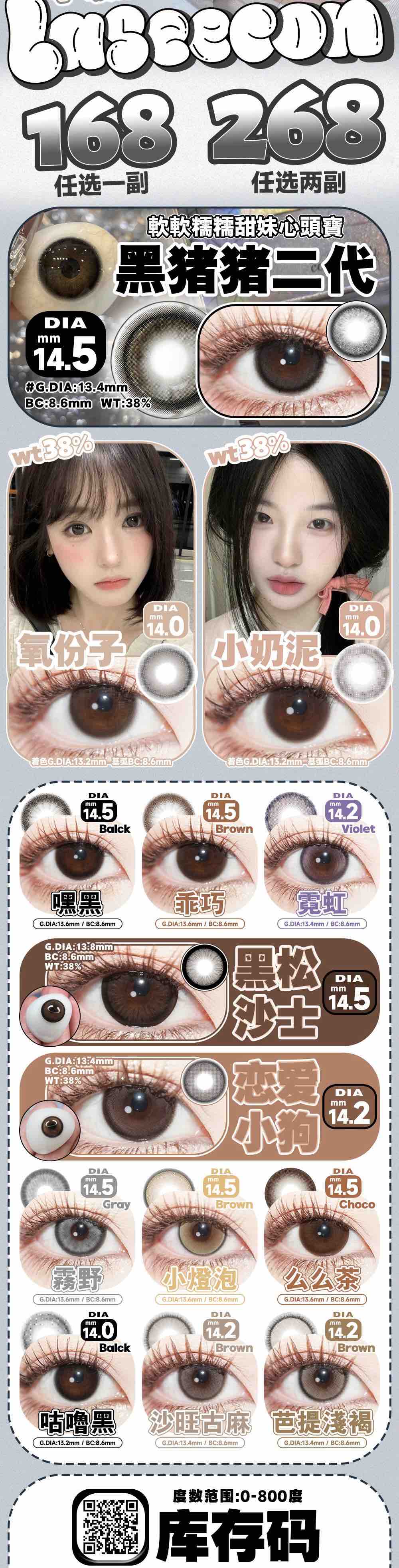 laseecon 美瞳年抛 活动合集【芭提浅褐/沙旺古麻/黑猪猪/烤栗子/咕噜黑/小奶泥/霓虹/鹿鹿棕/卡其麻/鸽子灰/嘿黑/乖巧】