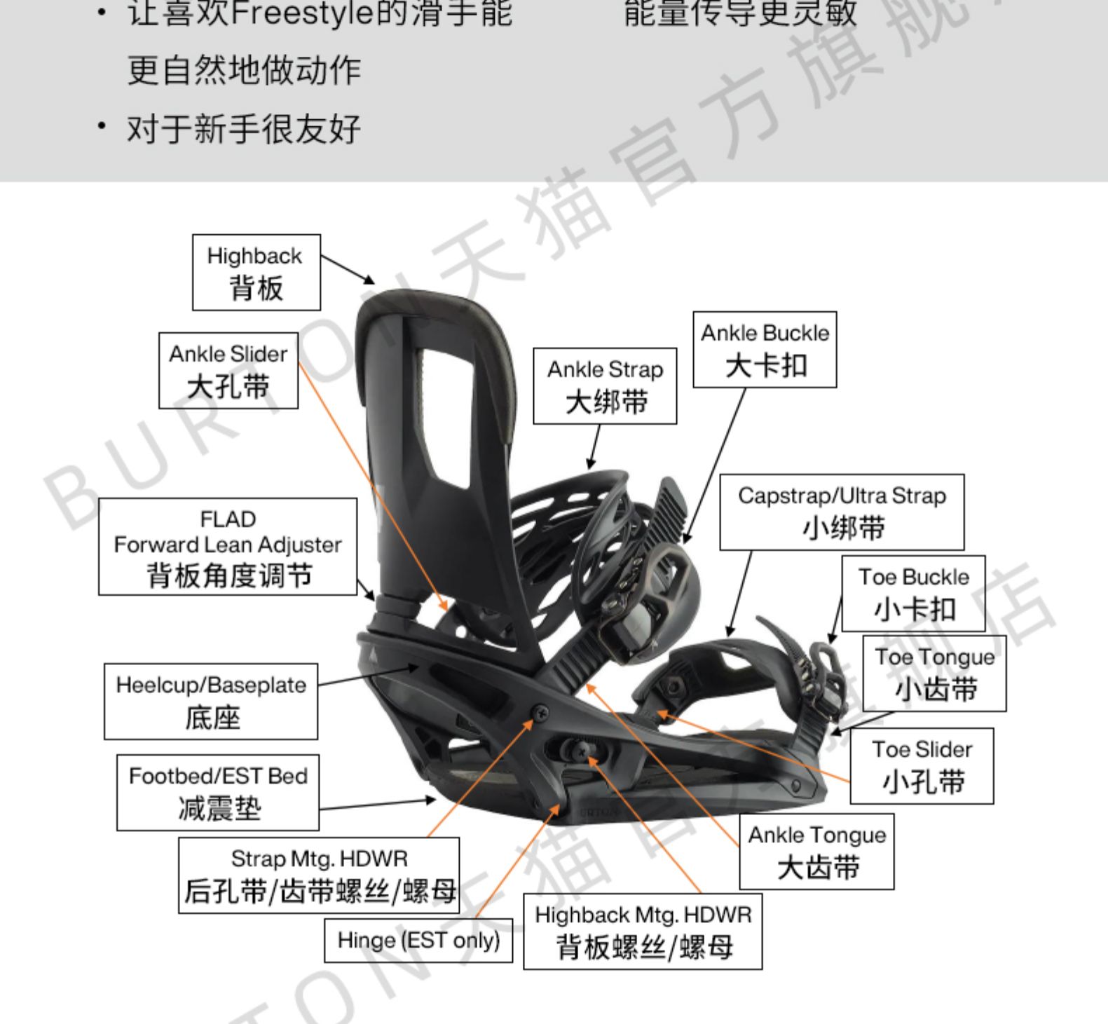 【七折清仓】BURTON伯顿官方男士固定器FREESTYLE滑雪单板105441