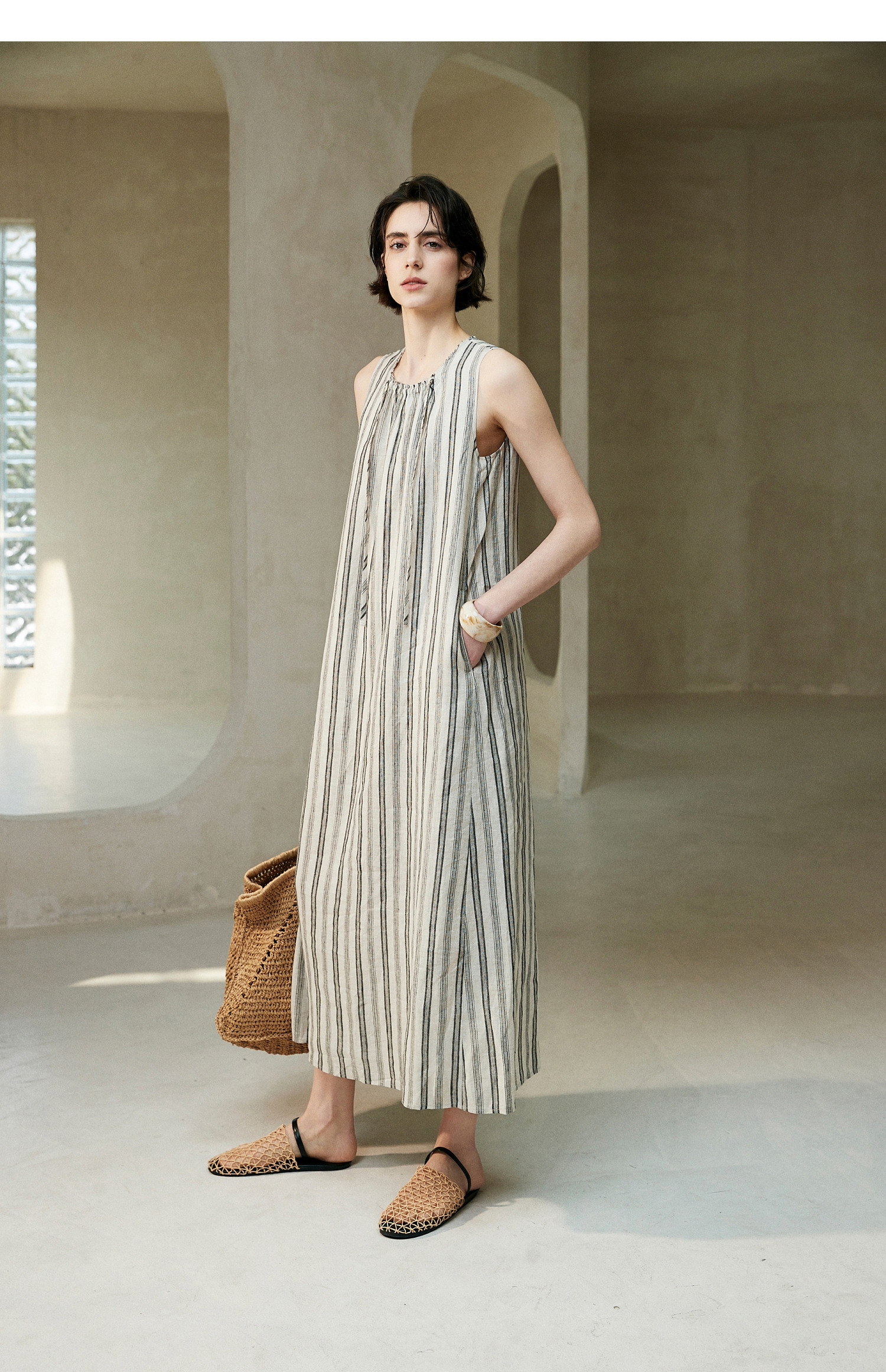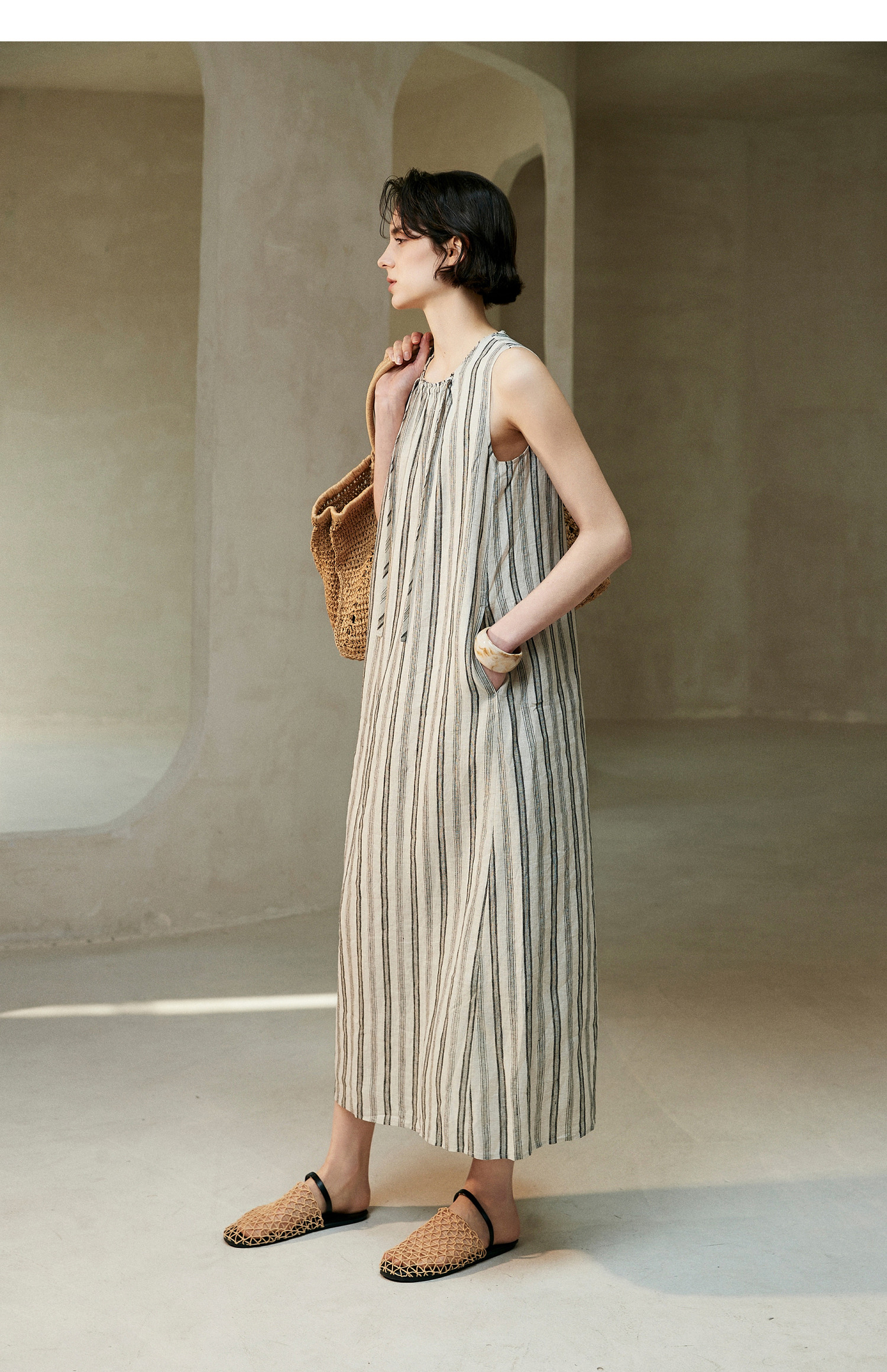棉仓362616005-初棉A型雨露麻连衣裙