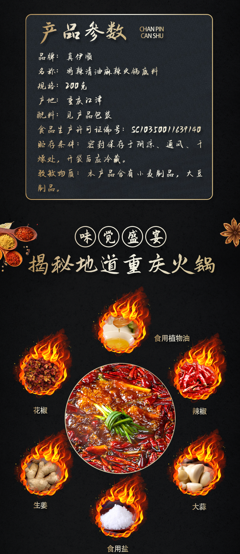 真伊顺 清真特辣清油麻辣火锅底料200克