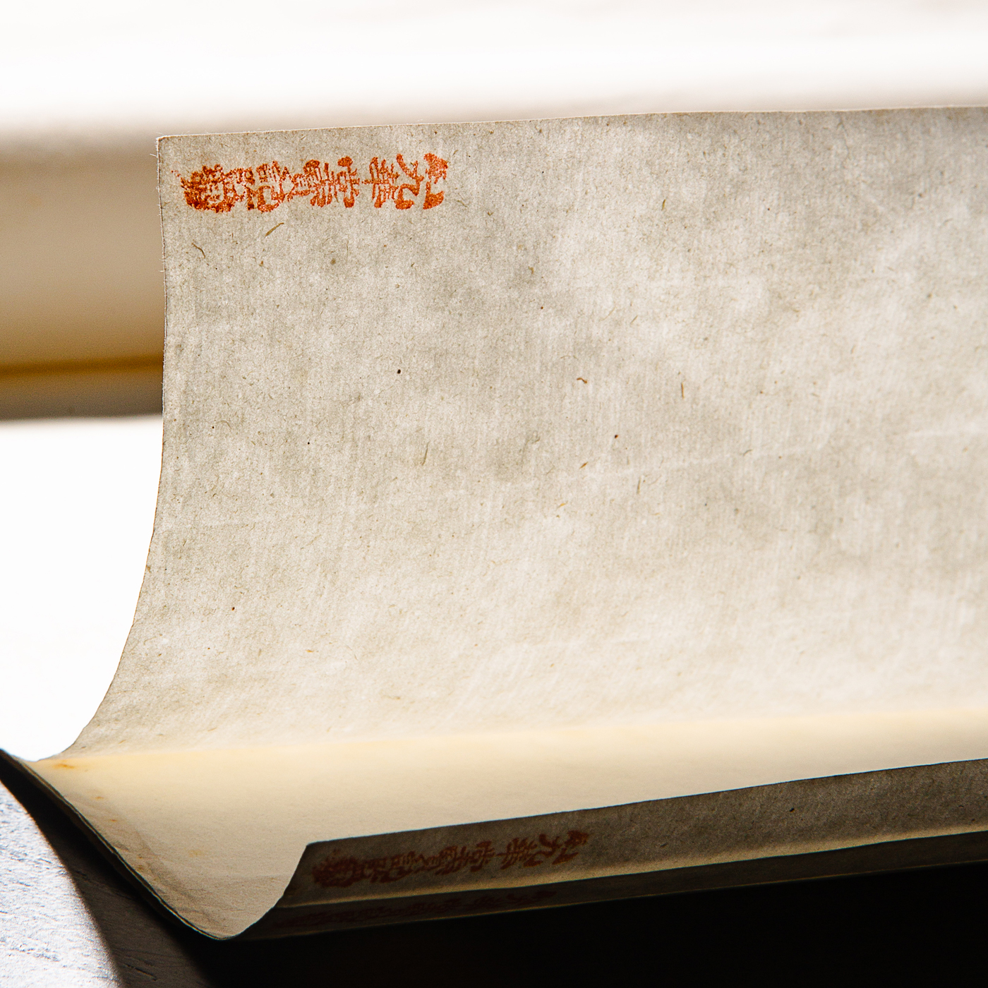 清末民国上海九华堂宝记制“煮捶笺”。其质地莹润如玉,手感细腻丝滑,帘纹精美,用料扎实,色泽温和古朴,宝光外放。此纸极罕见,收藏价值极高。