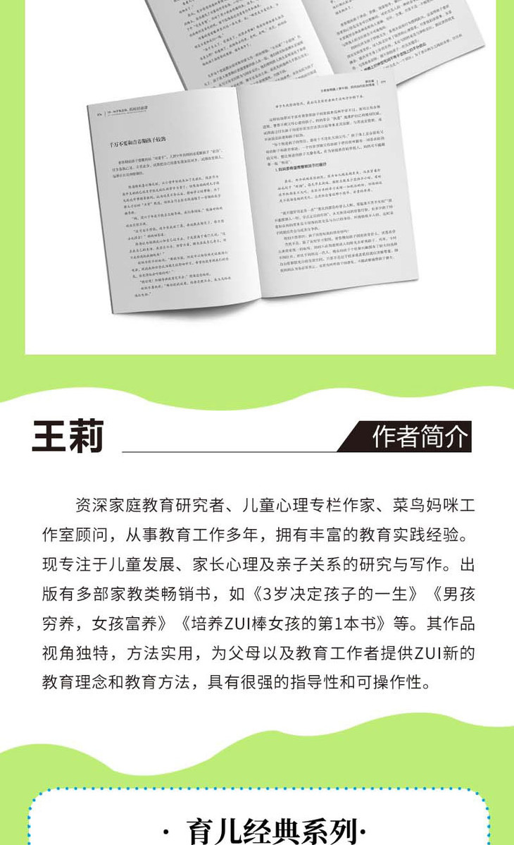 资深家庭教育研究者、儿童心理专栏作家、菜鸟妈咪工作室顾问,从事教育工作多年,拥有丰富的教育实践经验。现专注于儿童发展、家长心理及亲子关系的研究与写作。著有多部家教类畅销书,如《3岁决定孩子的一生》《男孩穷养,女孩富养》《培养zui棒女孩的第1本书》等。其作品视角独特,方法实用,为父母以及教育工作者提供zui新的教育理念和教育方法,具有很强的指导性和可操作性。
