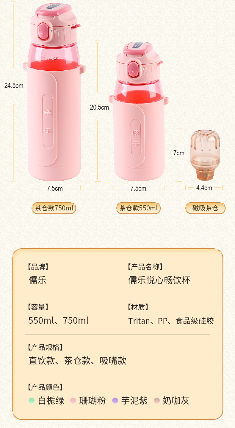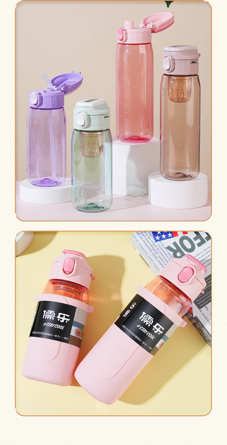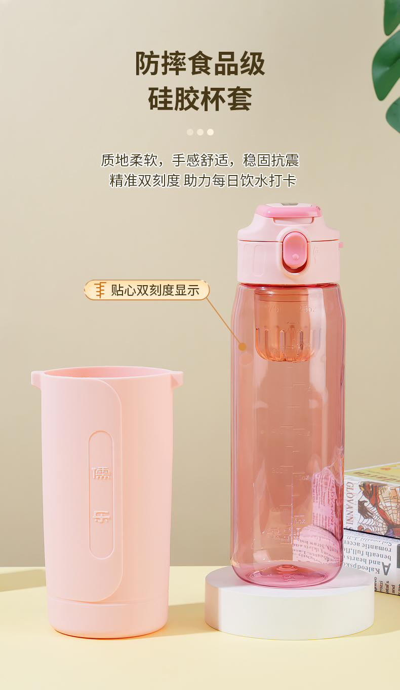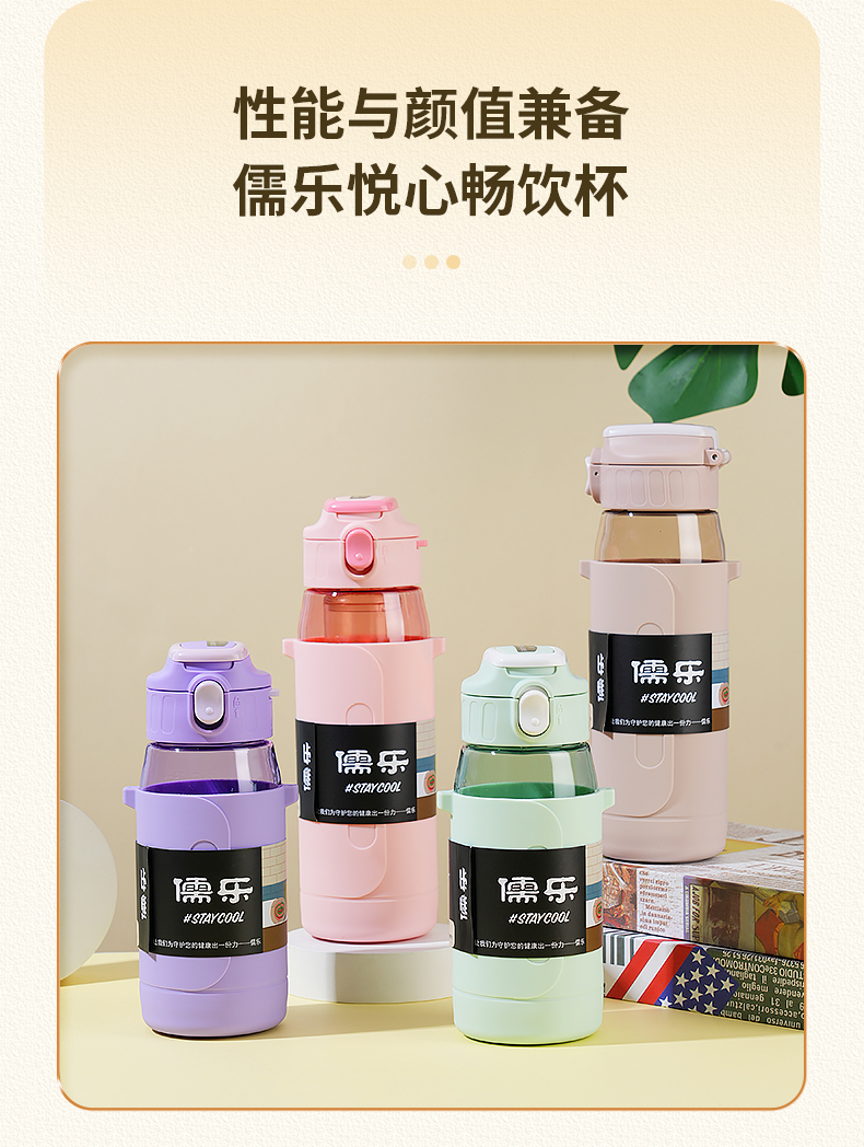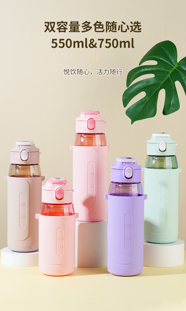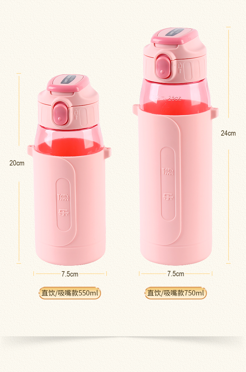 儒乐悦心畅饮杯直饮吸嘴tritan防摔大容量送背带便携水杯