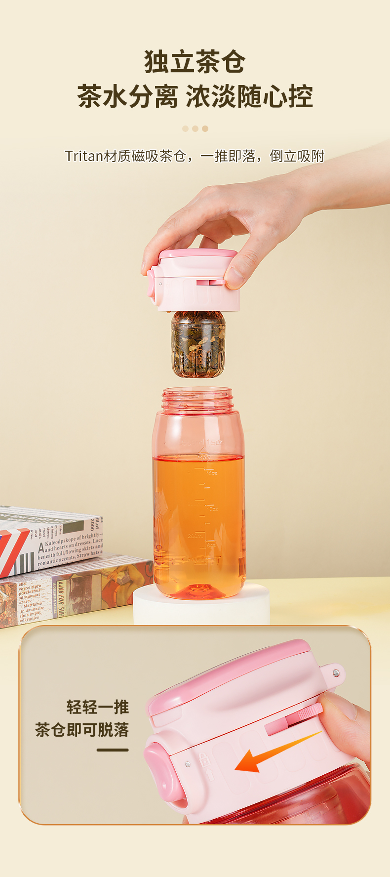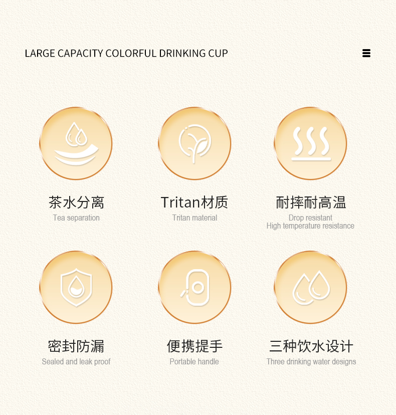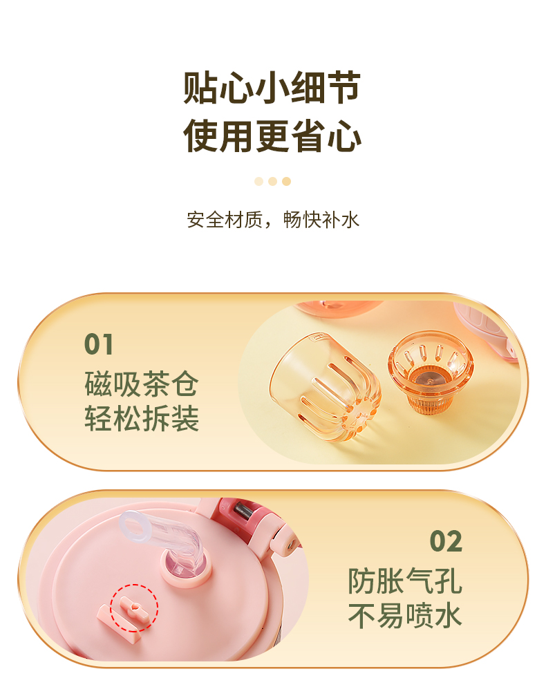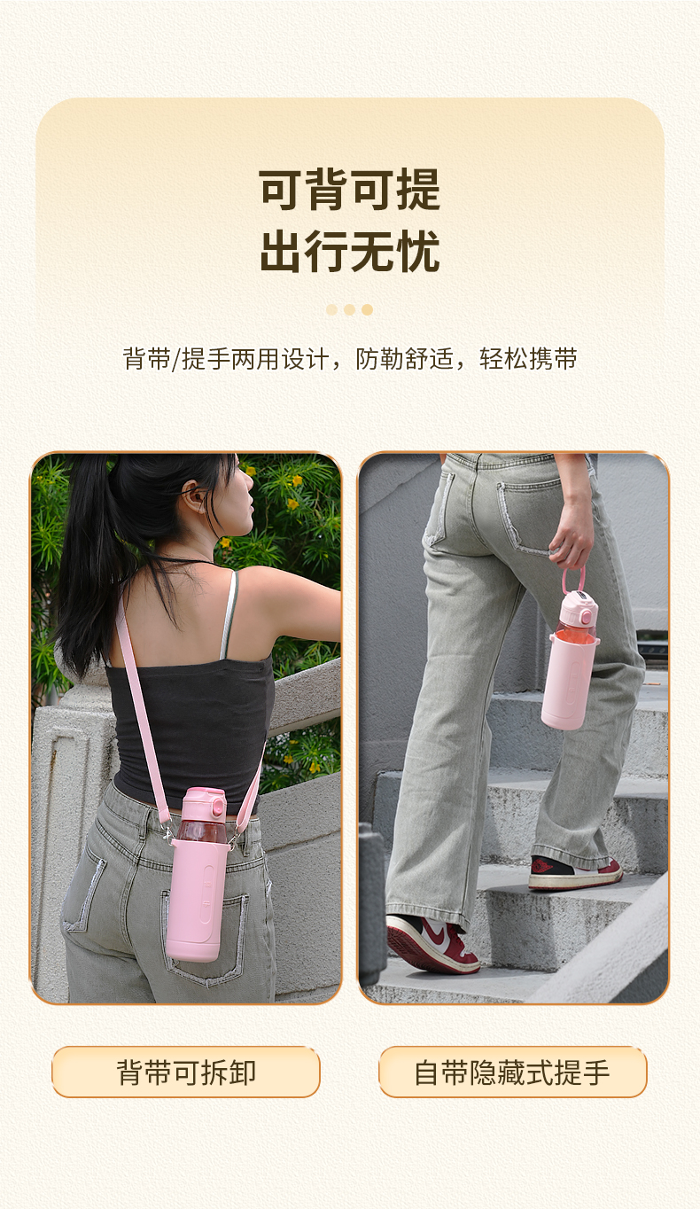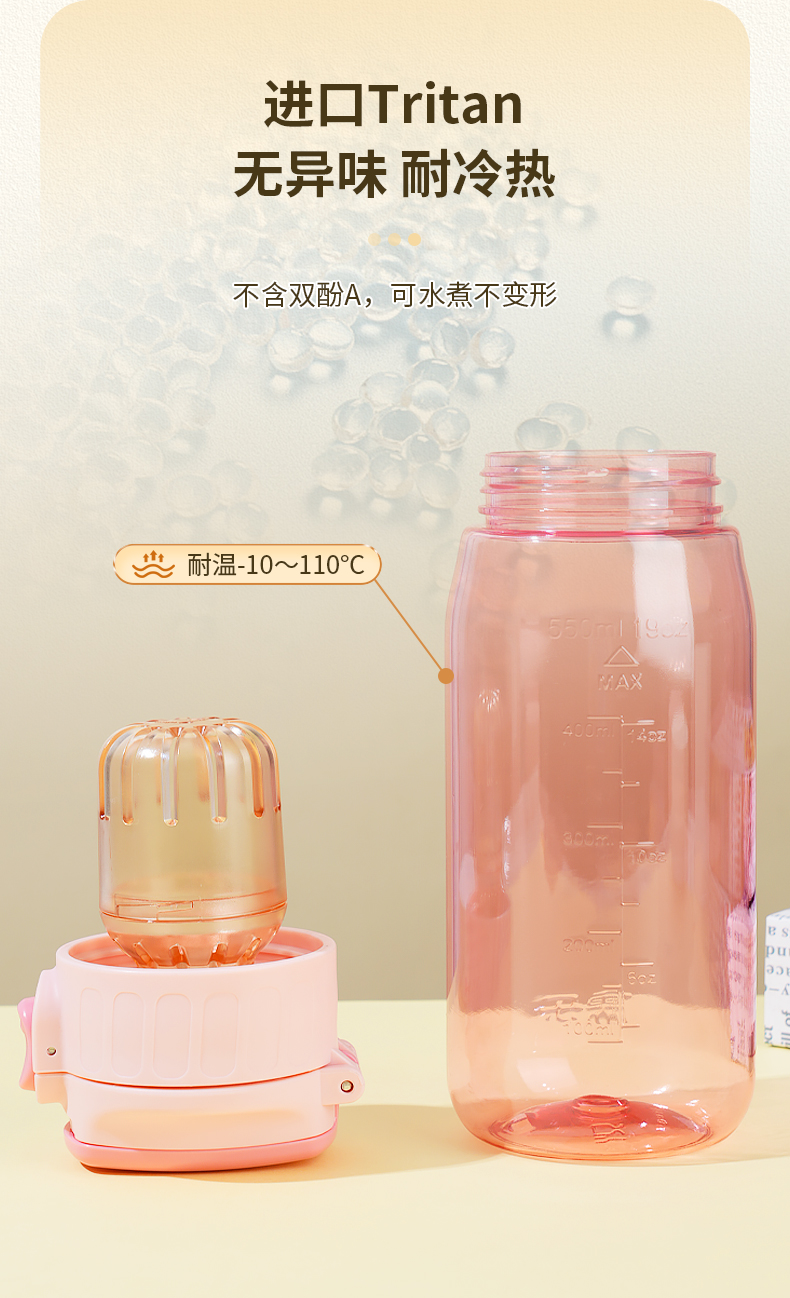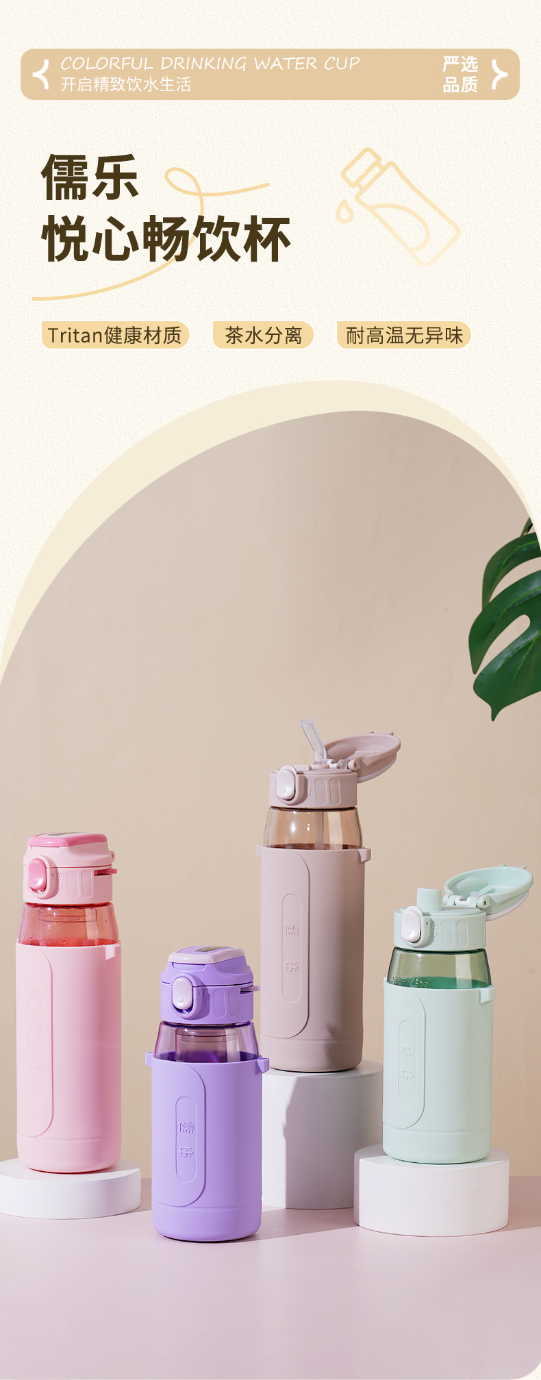 儒乐悦心畅饮杯直饮吸嘴tritan防摔大容量送背带便携水杯