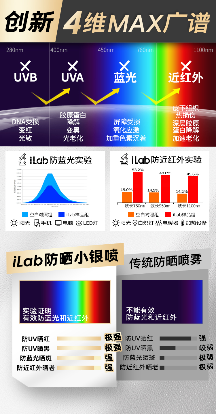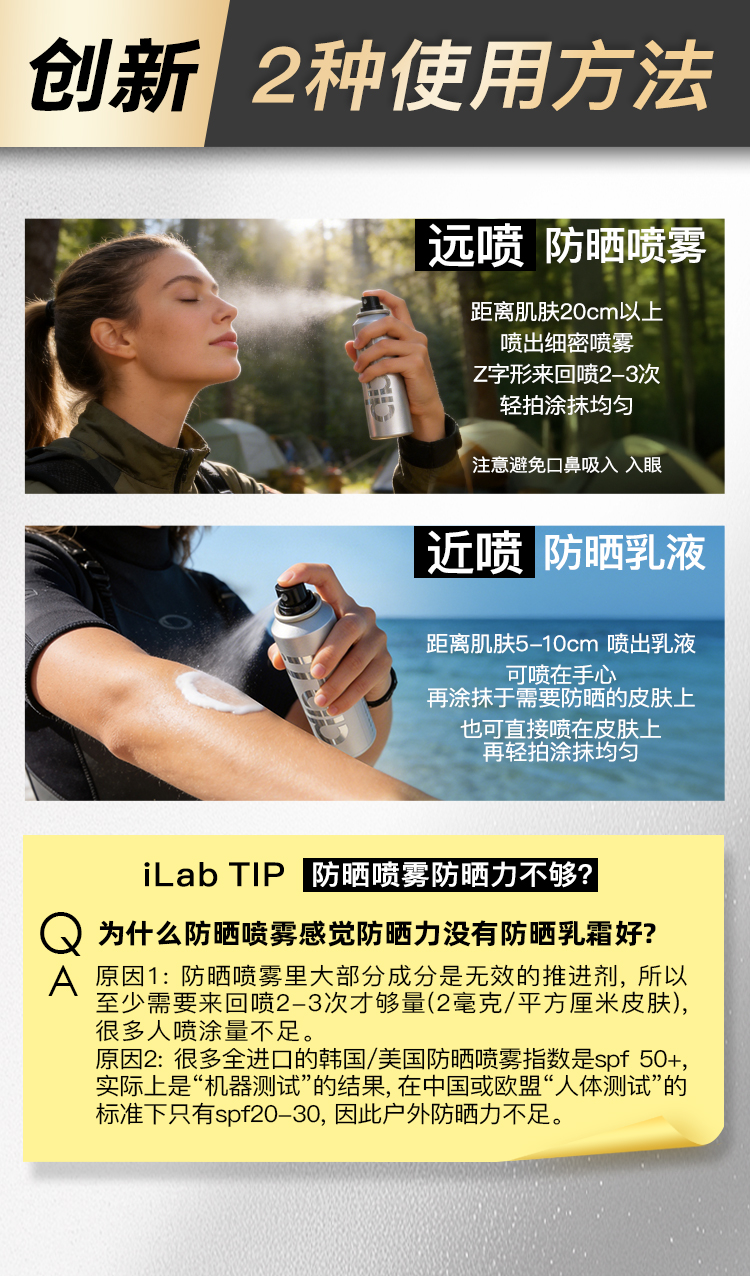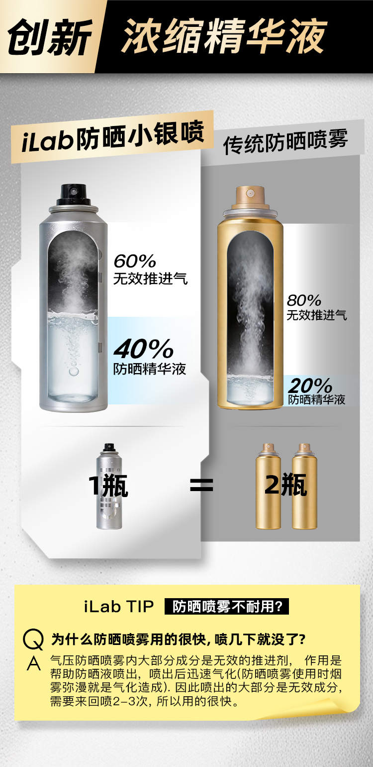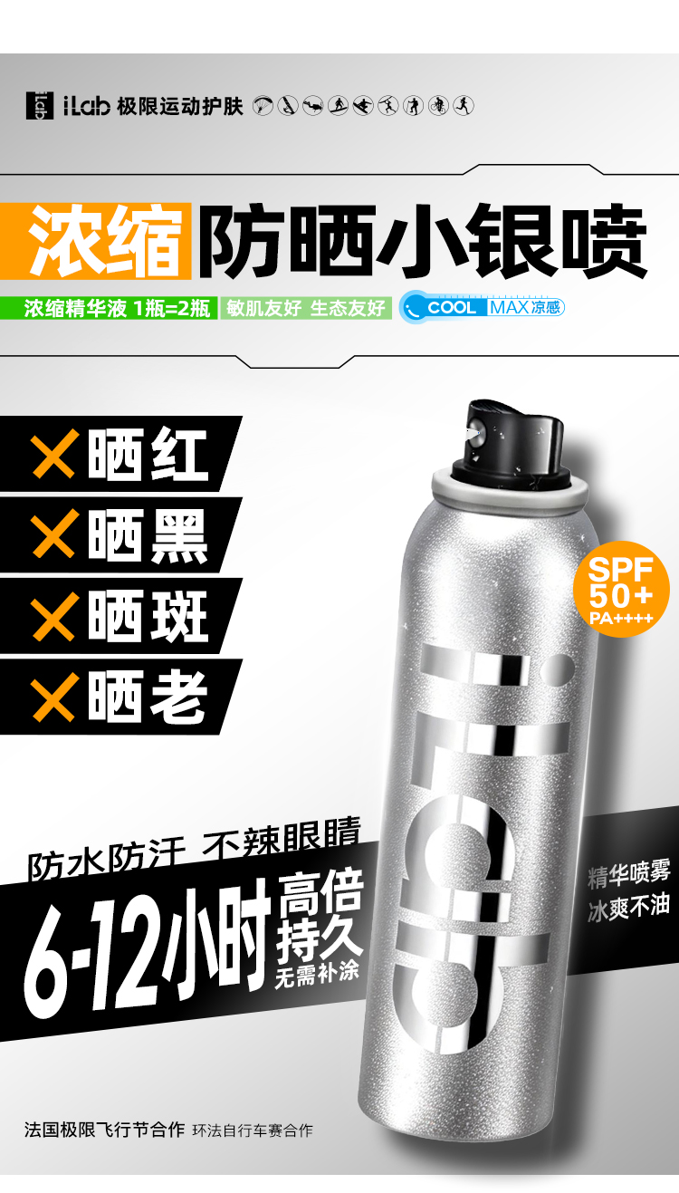 iLab艾莱博防晒小银喷(浓缩1瓶=2瓶)6-12小时/防水防汗/不辣眼睛
