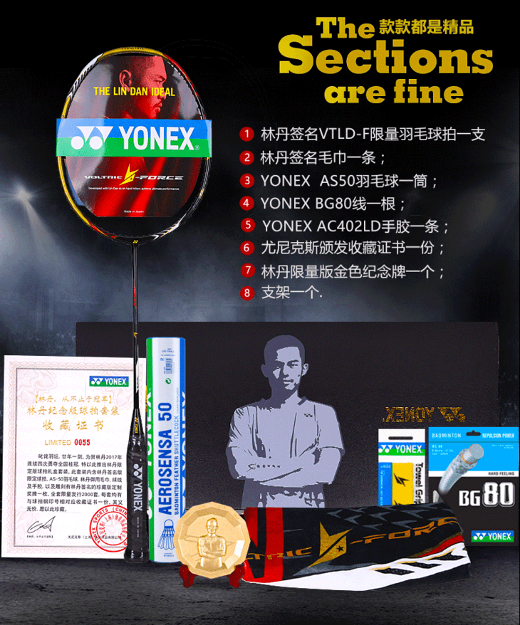 1、林丹签名VTLD-F限量羽毛球拍一支