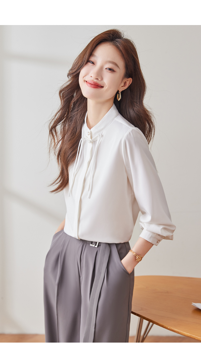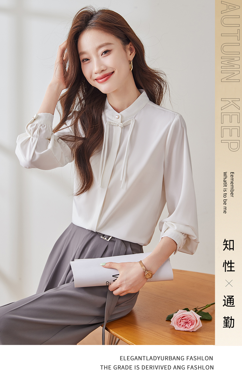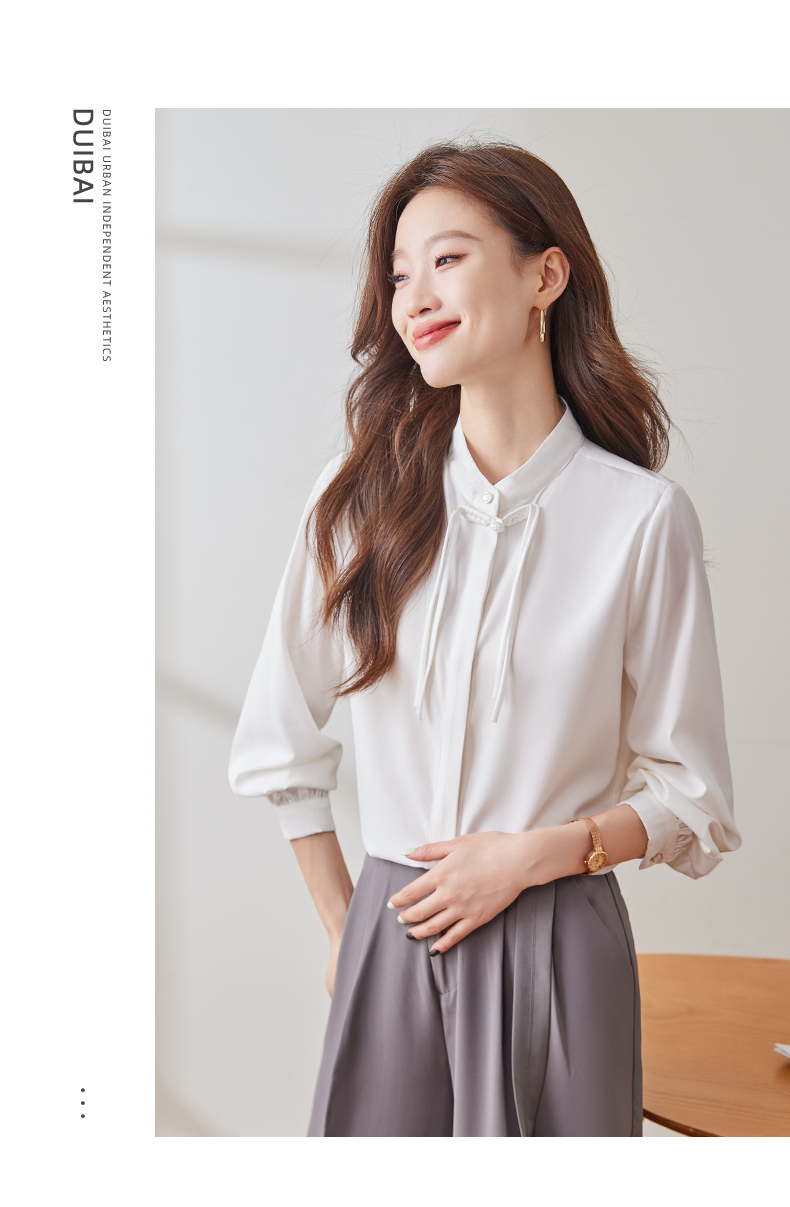 Q2002新款长袖春秋气质衬衣白色时尚百搭小众设计感法式宽松衬衫
