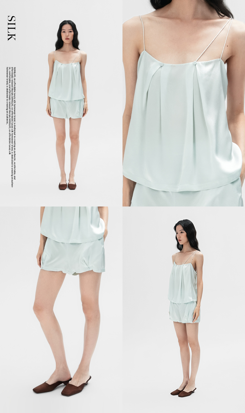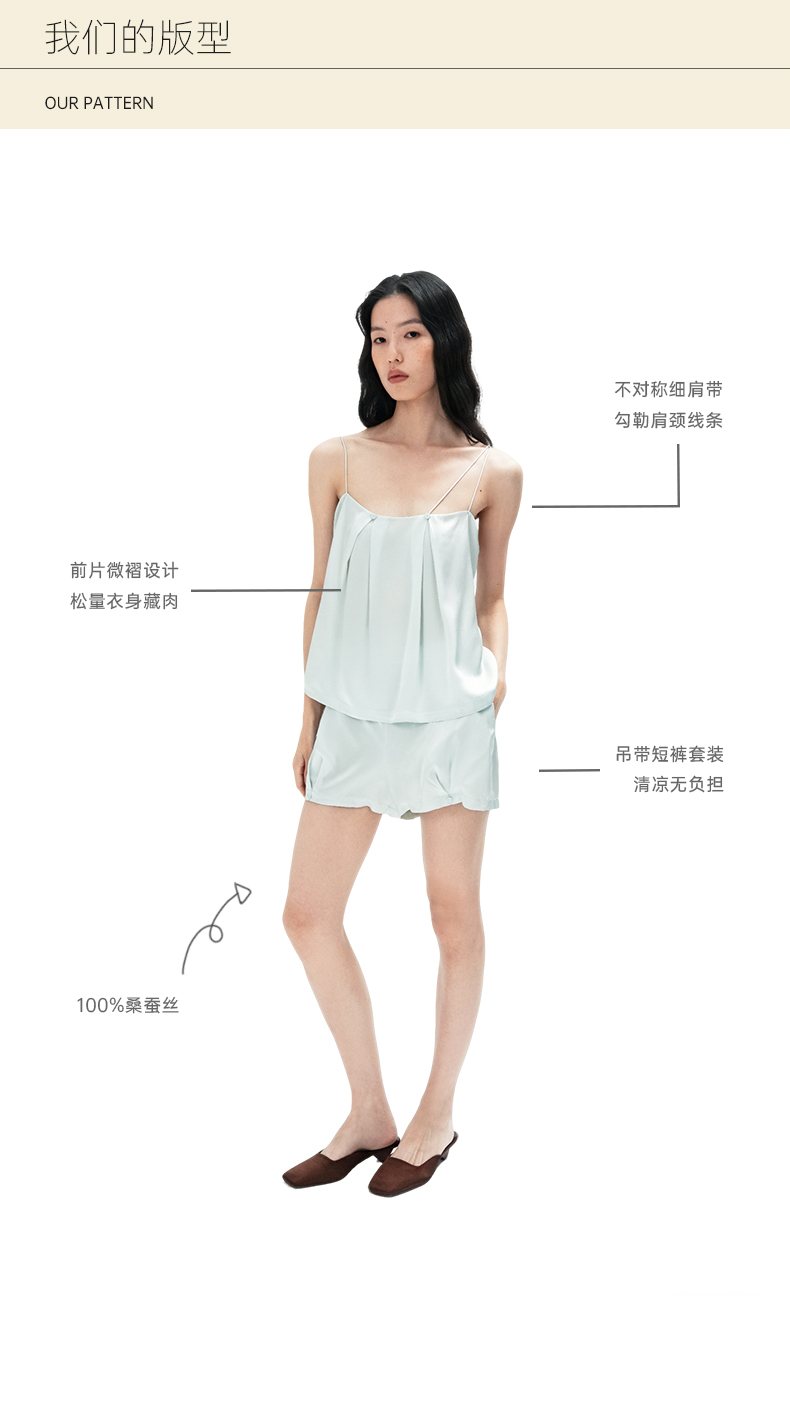 清冷氛围』桑罗吊带短裤睡衣套装桑蚕丝女家居服可外穿