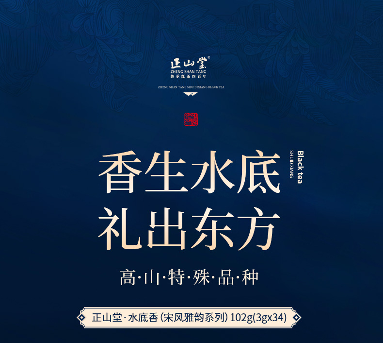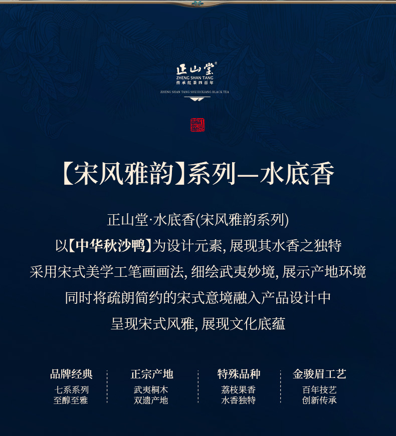 正山堂 宋风雅韵水底香礼盒装 正山小种红茶特级茶叶年货送礼102g