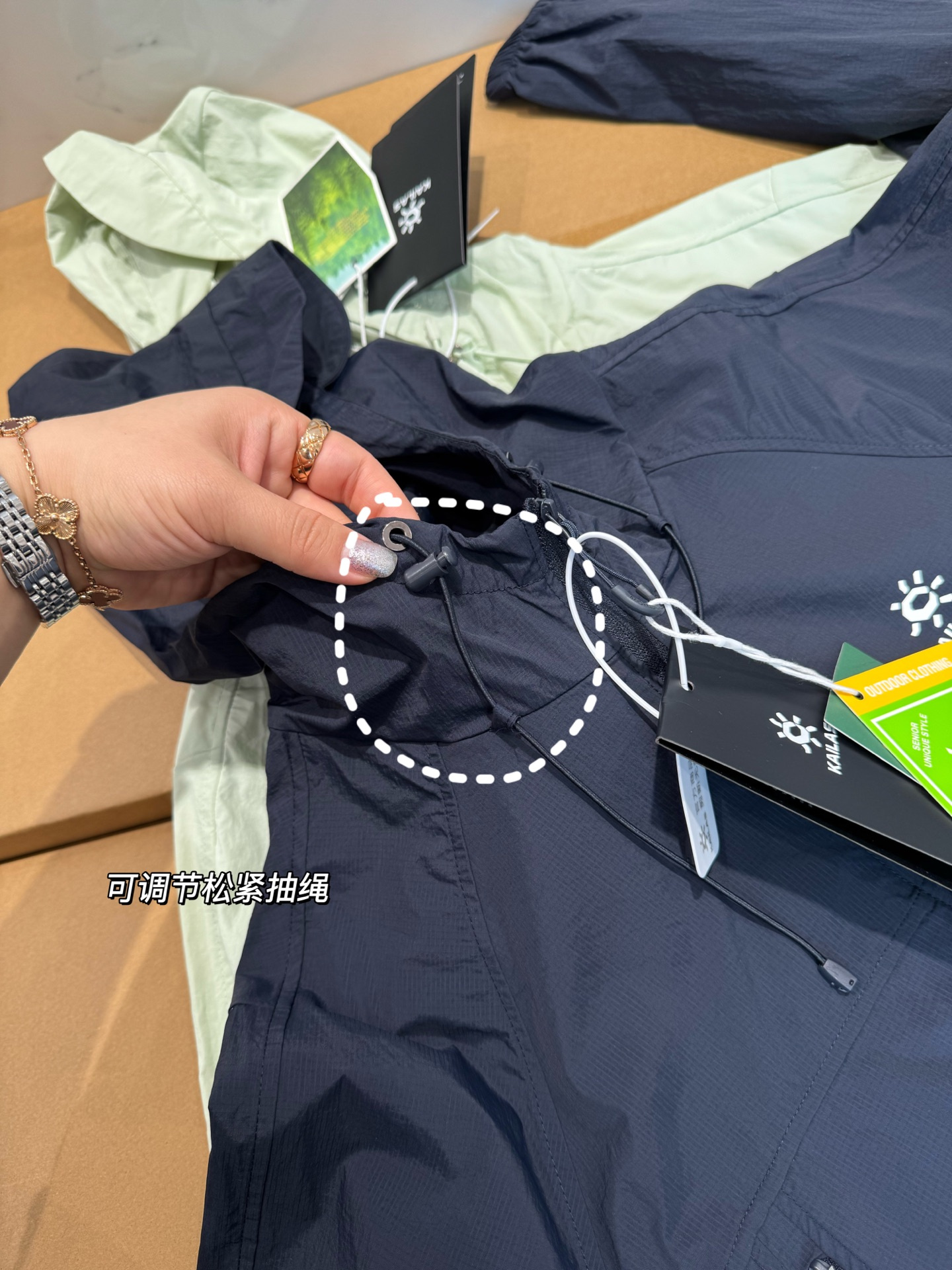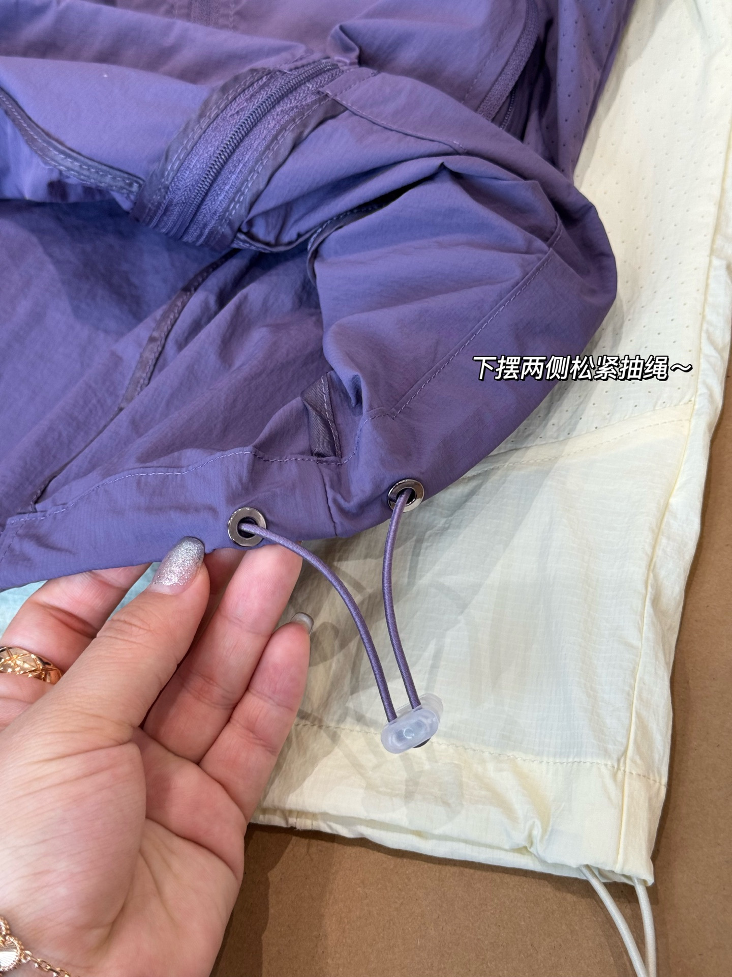 下摆两侧精致松紧绳,可自由调节版型,收腰显瘦,怎么穿都好看!
