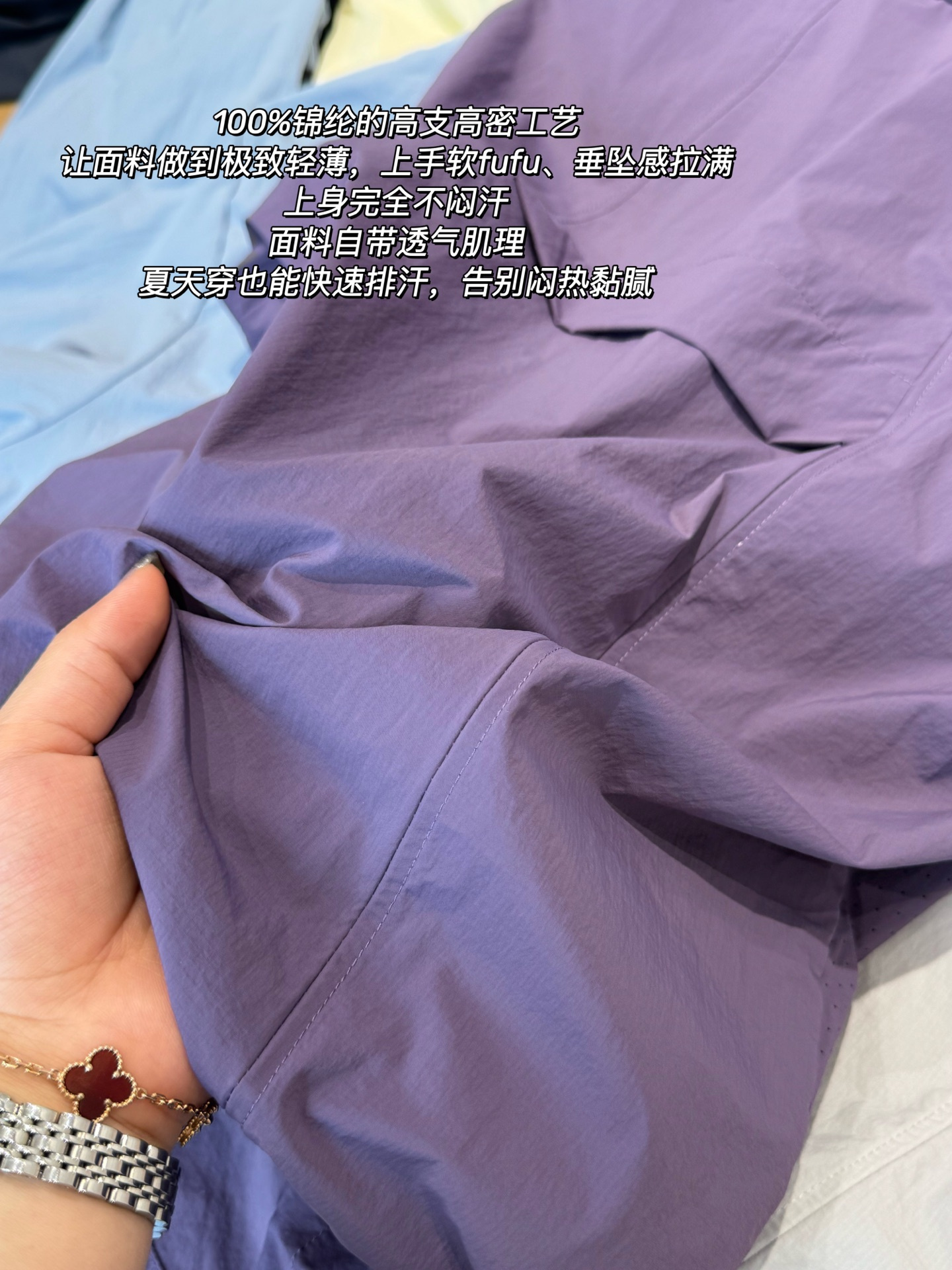 100%锦纶的高支高密工艺,让面料做到极致轻薄,上手软fufu、垂坠感拉满,上身完全不闷汗。