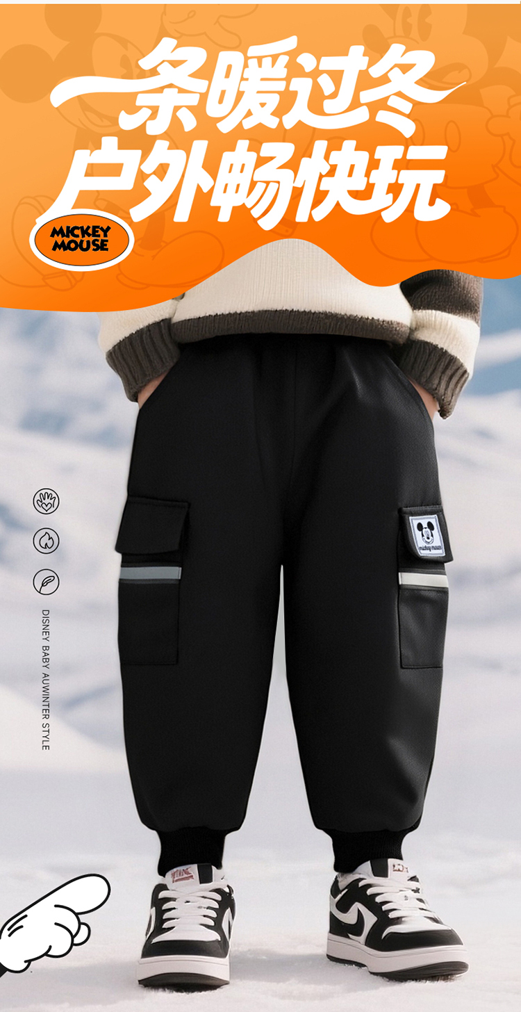 迪士尼运动夹棉长裤米奇潮酷男童夹棉冬款长裤ZD4EK007