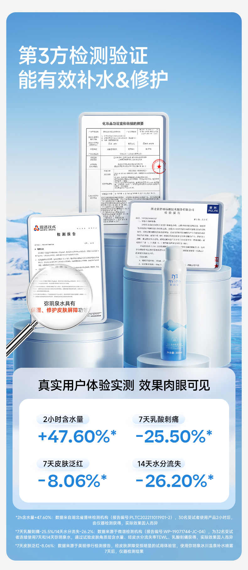 【品名】【超值组合装 加赠面膜5片】弥玥泉 冰川温泉 保湿喷雾 长效保湿舒缓 【规格】300ml*2瓶+200ml*1瓶+1盒面膜 【备案编号】新G妆网备字2023000047 【执行标准】GB/T 2660 【产地】国内 【保质期】3年 【发货包装】独立包装 【发货地】郑州 【发货快递】圆通 【不发货区域】海南 【补邮费地区】新疆、西藏+15元 【发货时效】48-72小时,周末节假日顺延 |