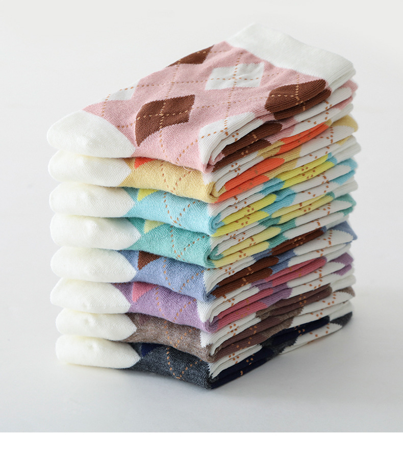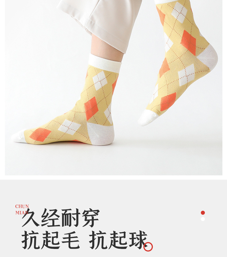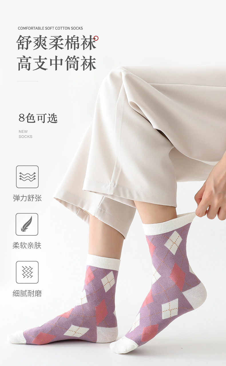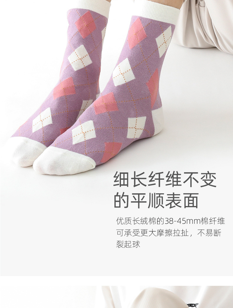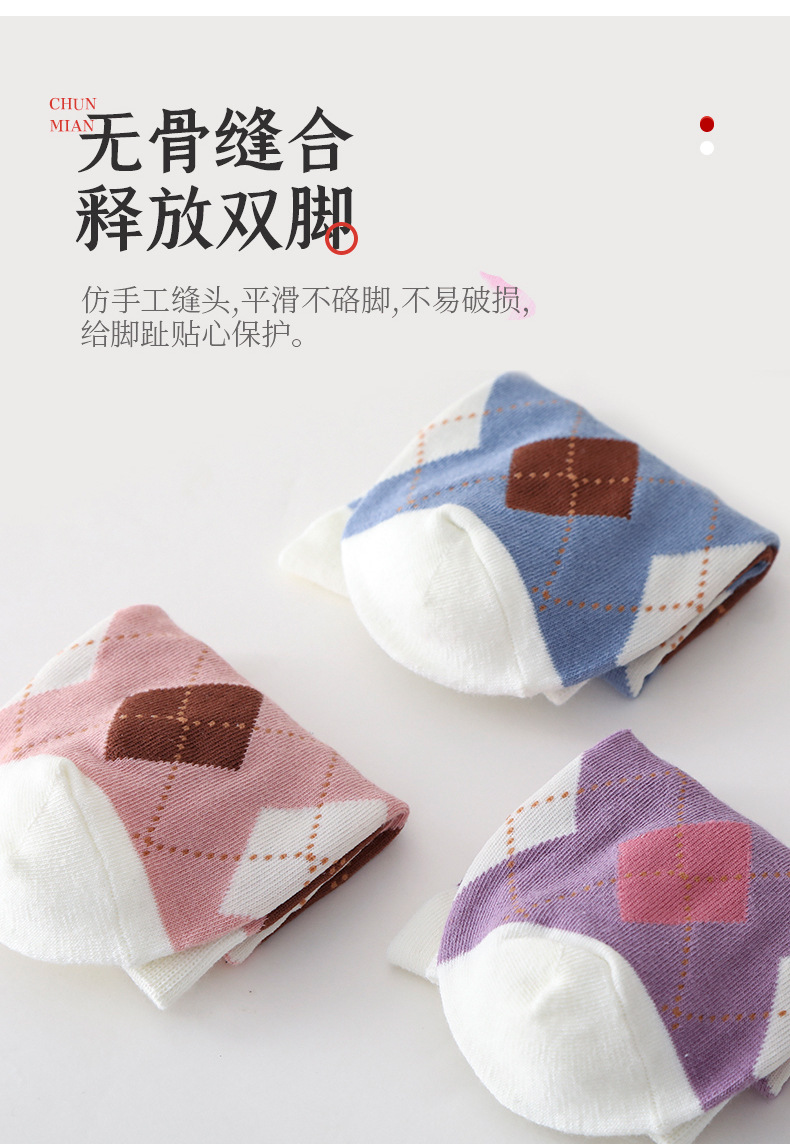 【无骨缝合 舒适柔软】秋冬纯棉中筒袜菱格袜子女复古学院风女士长袜ins潮袜子