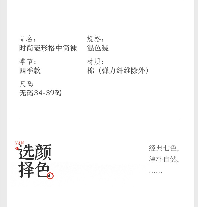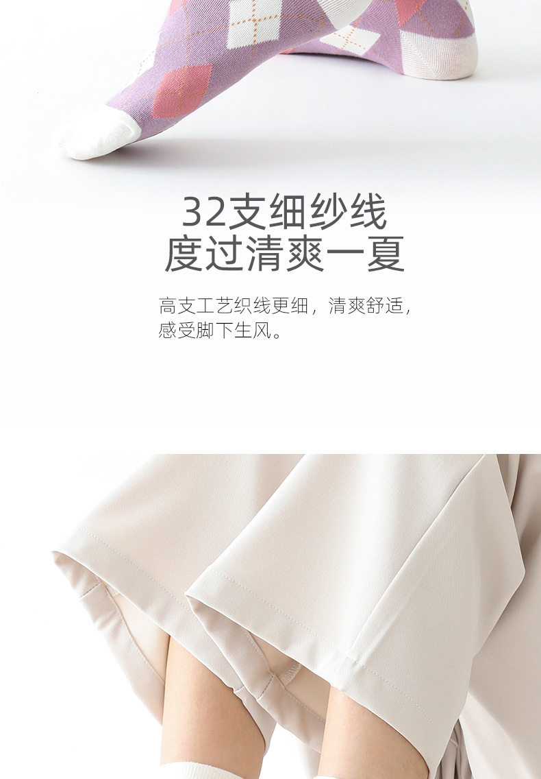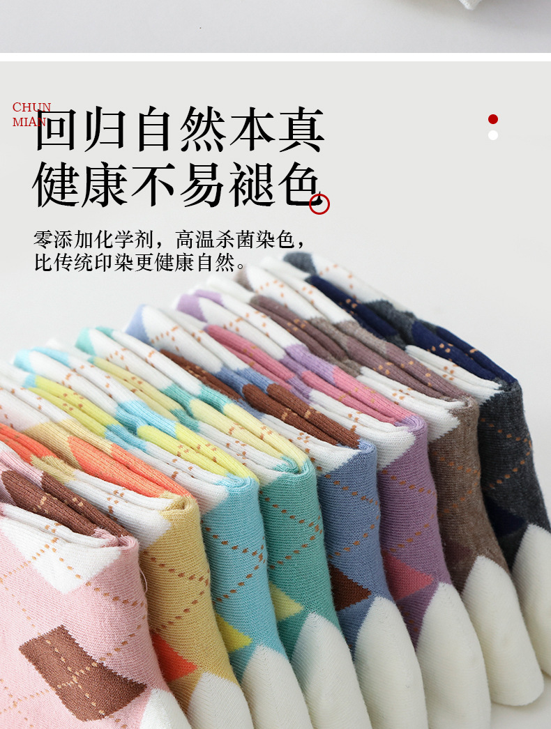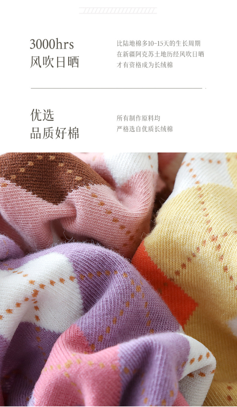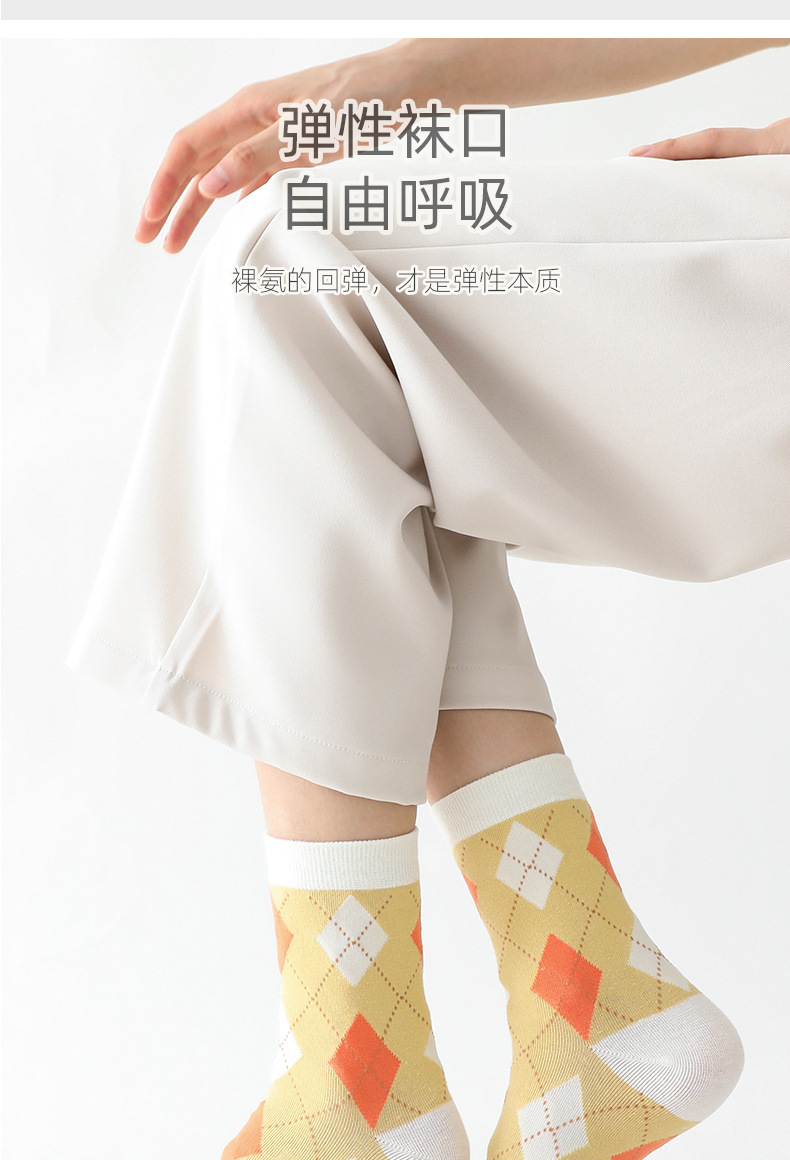 【无骨缝合 舒适柔软】秋冬纯棉中筒袜菱格袜子女复古学院风女士长袜ins潮袜子