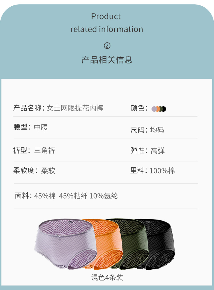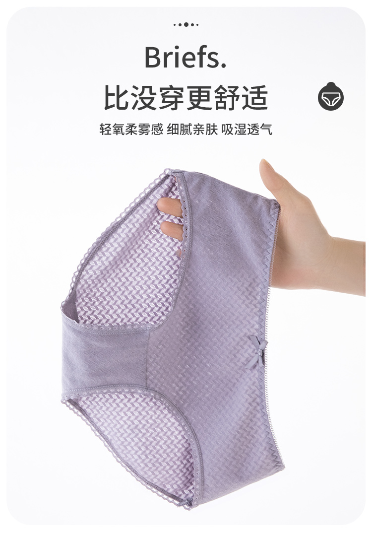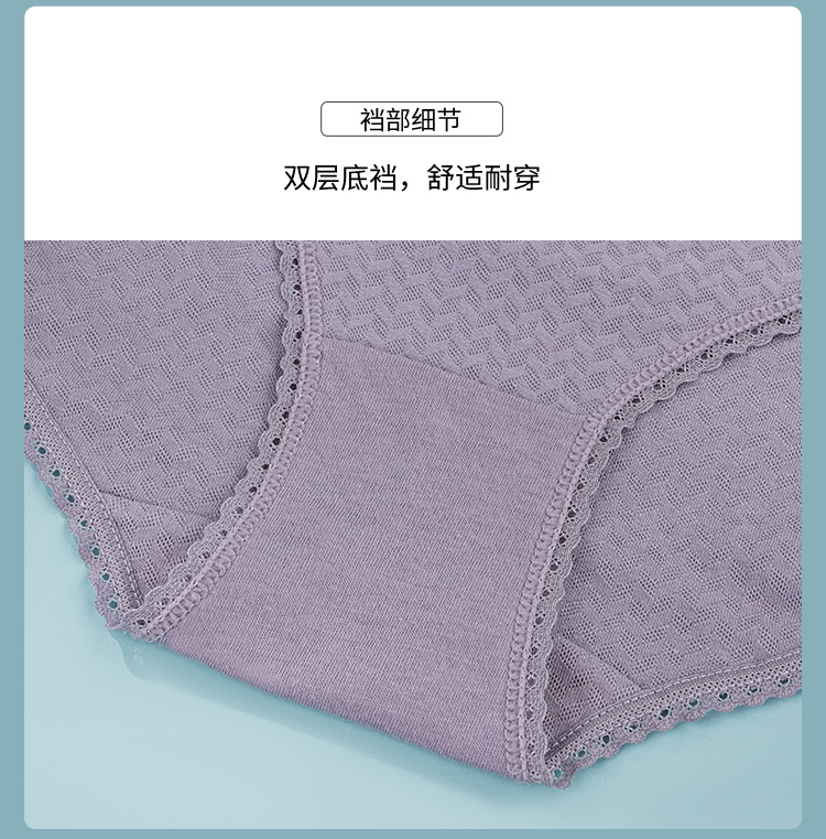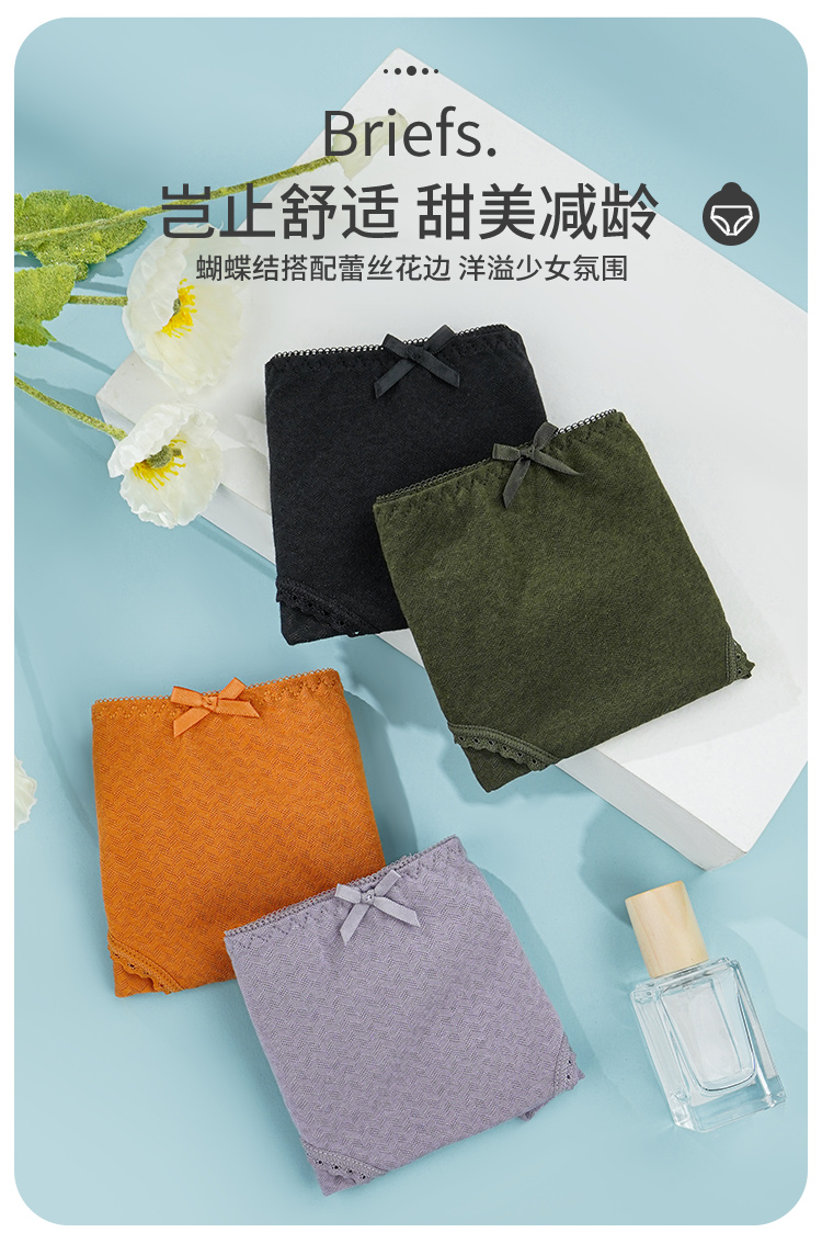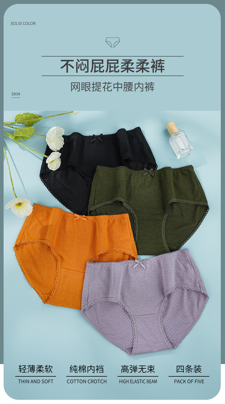 雅黛俪内裤女中腰纯棉裆纯色百搭网眼提花高弹柔软舒适透气4条装