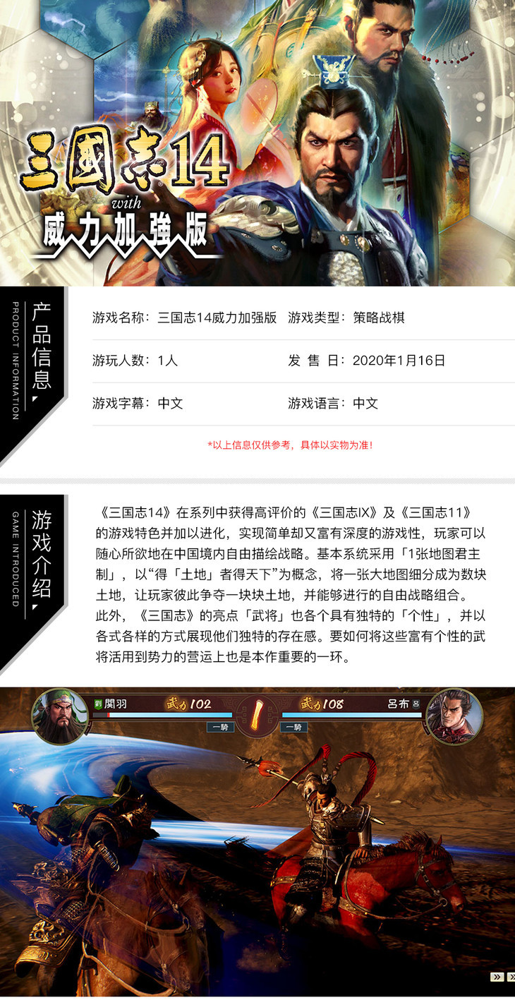 【畅玩卡可租】二手Switch游戏 三国志14 威力加强版 中文版