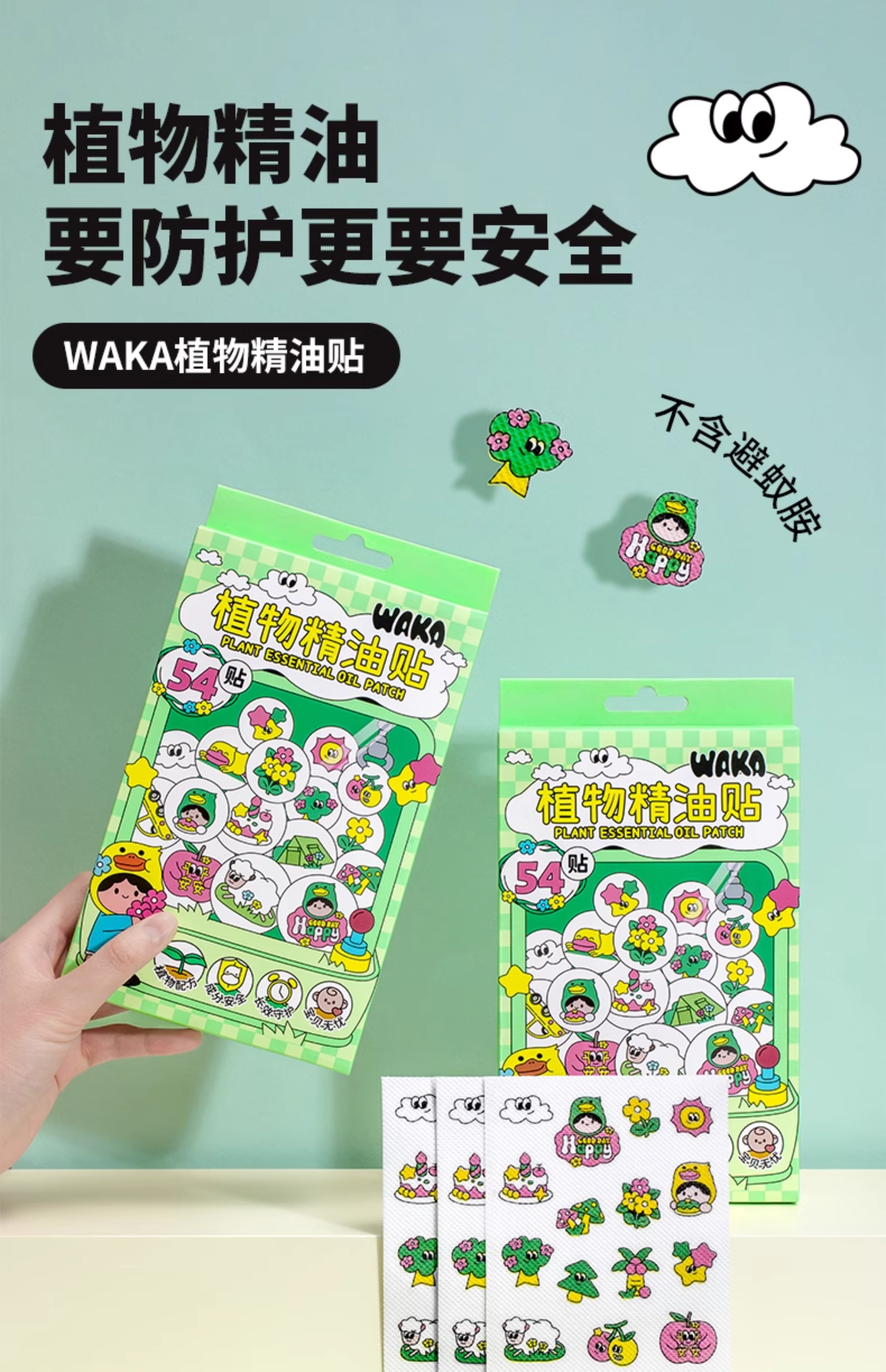 【春上新】9楼母婴生活馆 WAKA植物精油防护贴54贴0岁以上可用宝宝儿童专用婴儿户外便携神器随身贴 吊牌价:39元 活动价:29.9元