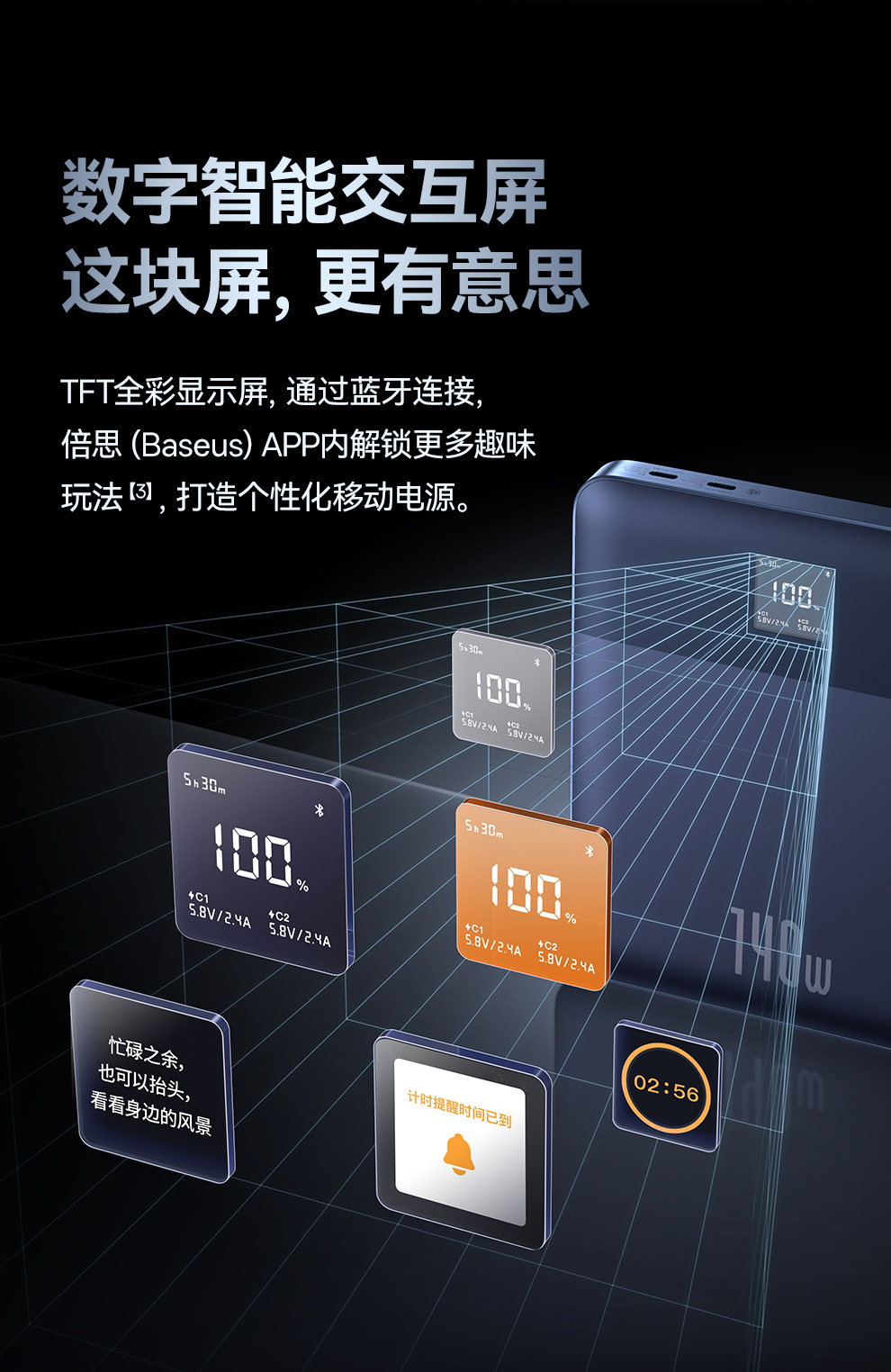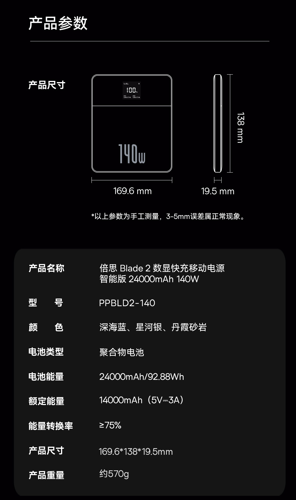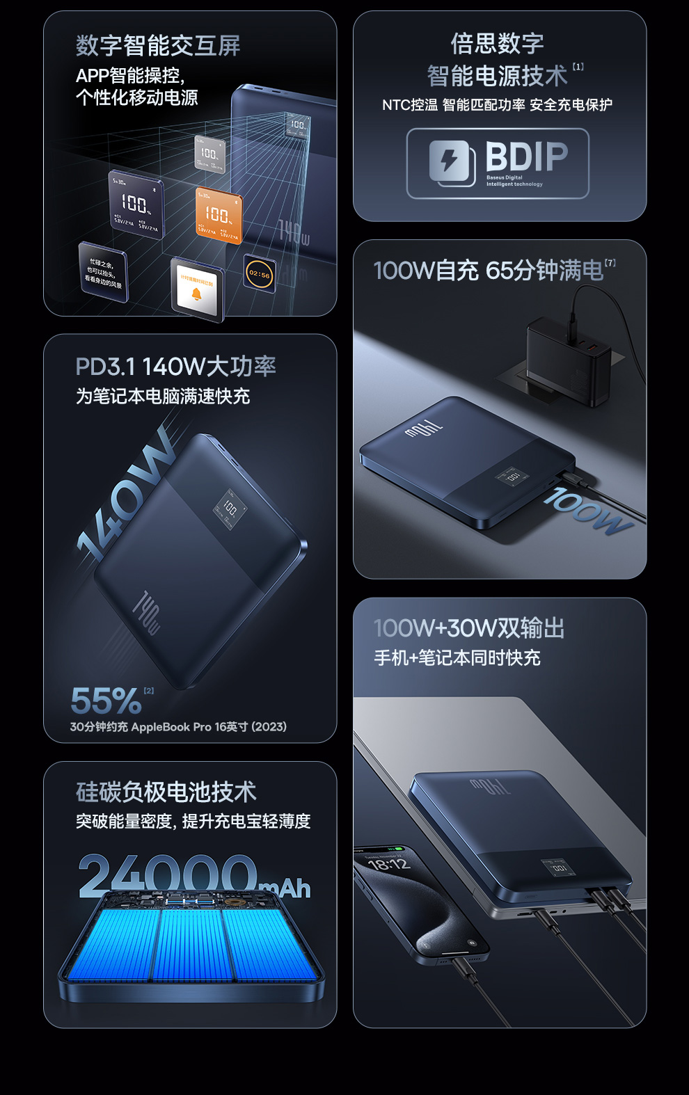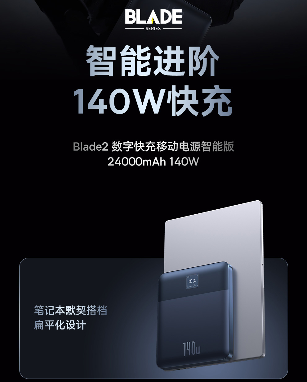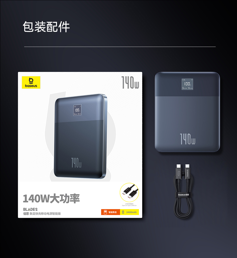 倍思 Blade 2 数显快充移动电源智能版 24000mAh 140W