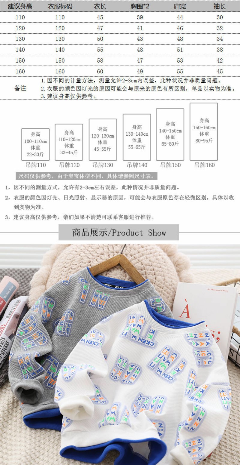 男童卫衣儿童春装假两件男孩打底衫宽松上衣潮中大童春秋