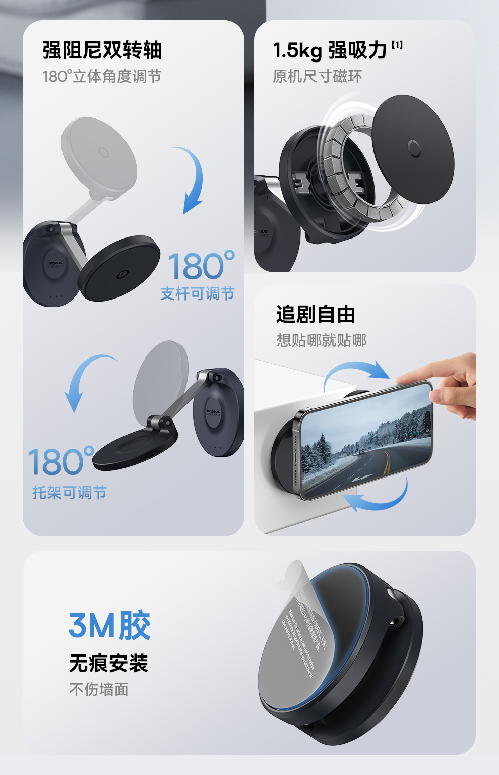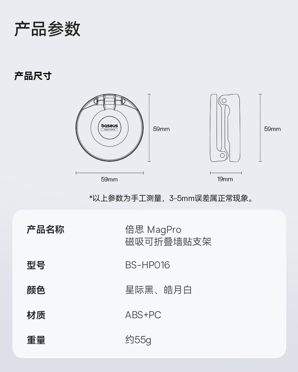 【十一专享】倍思 MagPro 磁吸可折叠墙贴支架