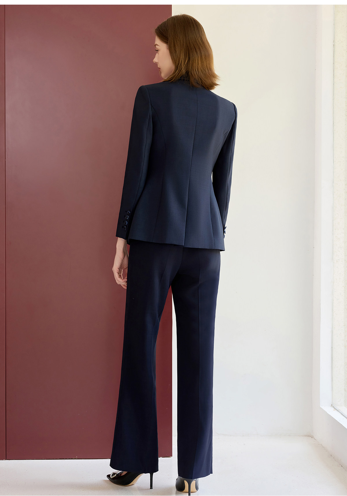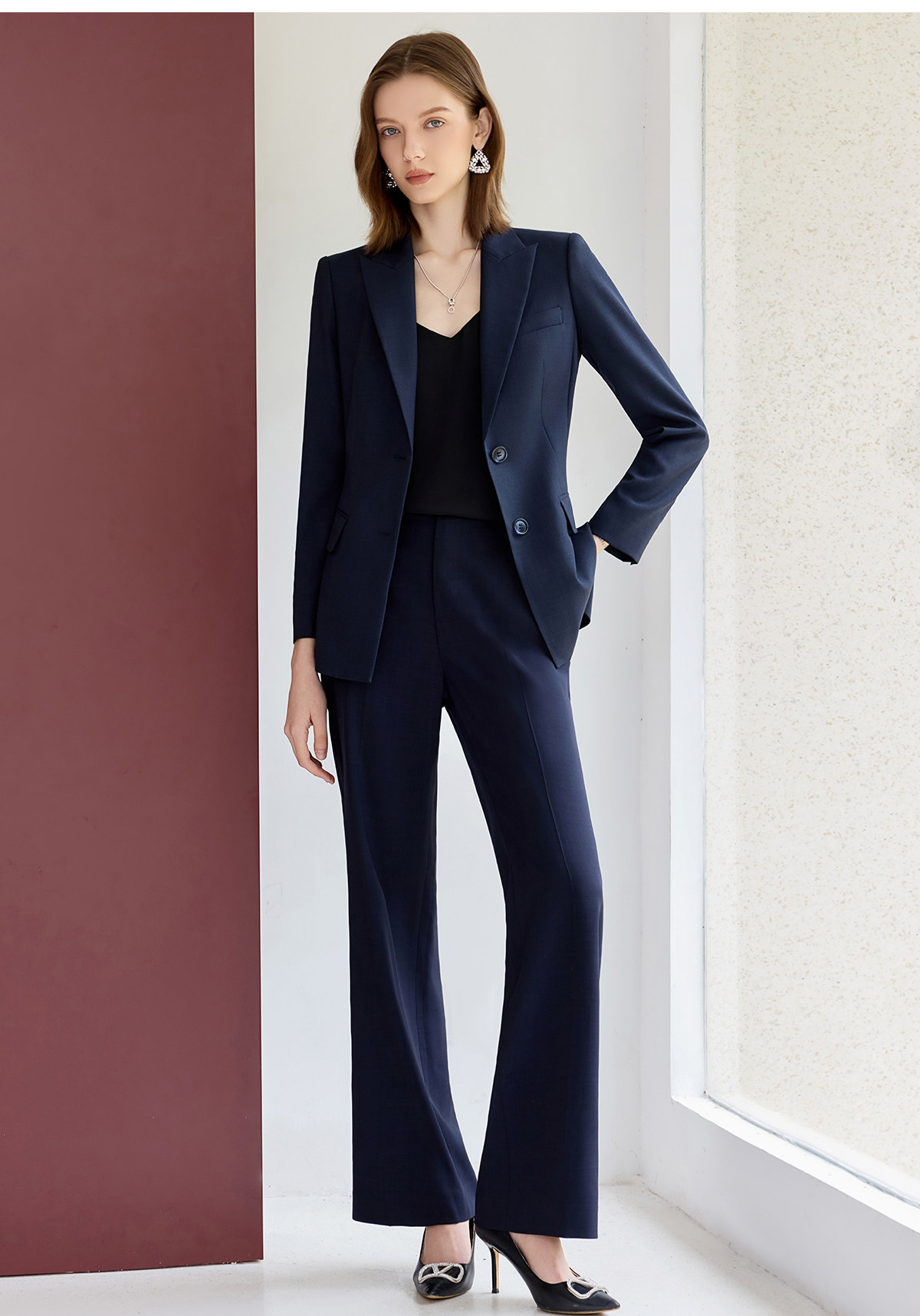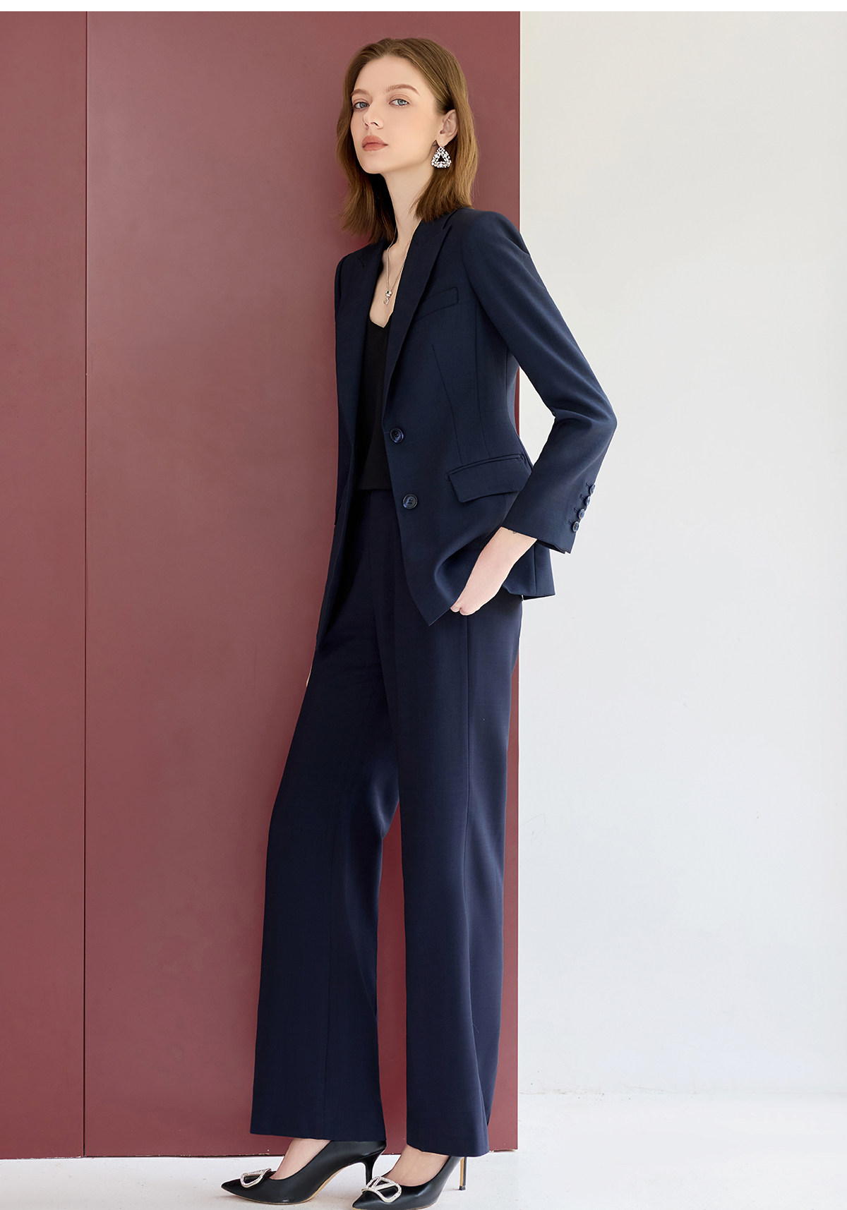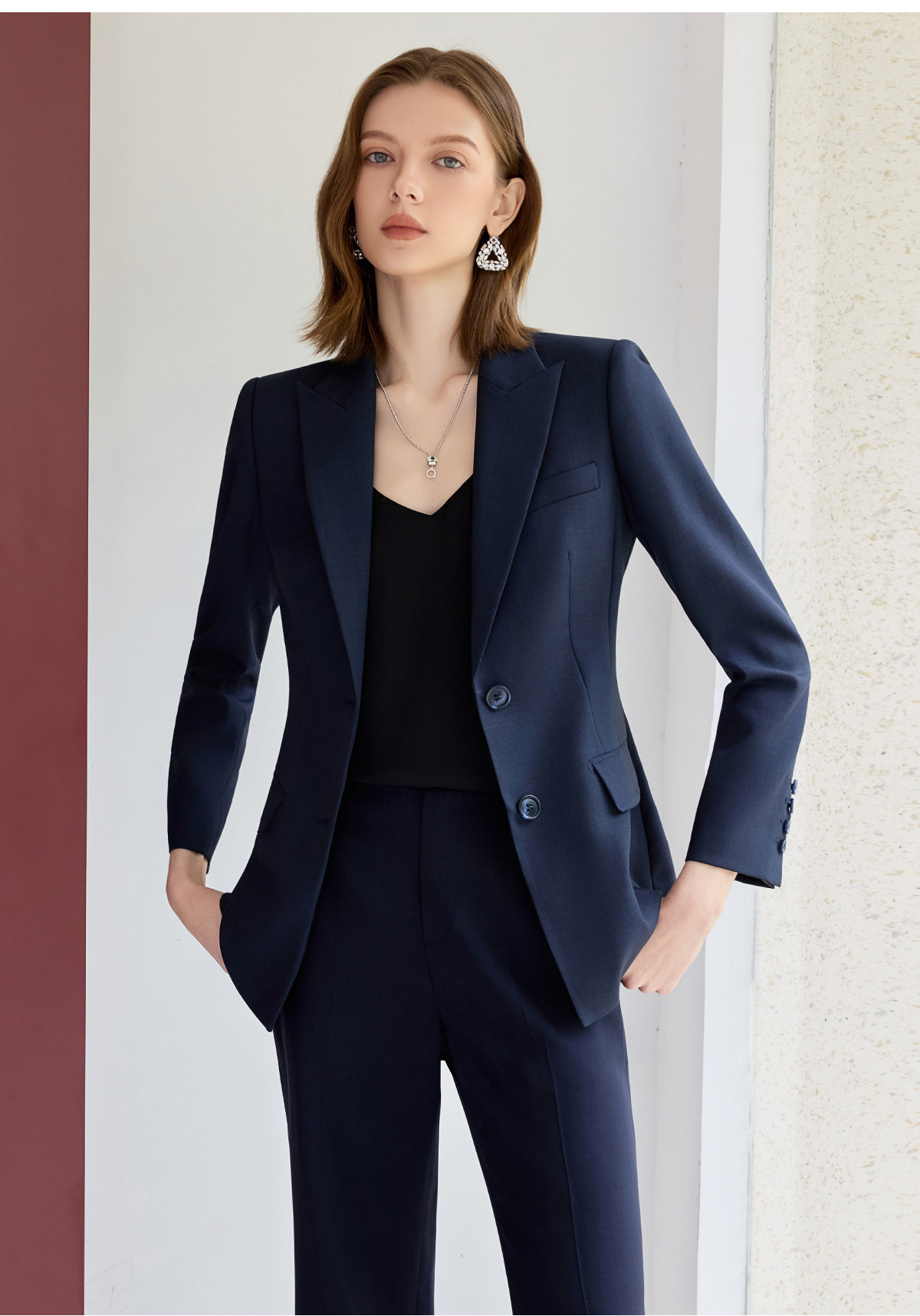 艾尚臣藏青色西装套装女秋职业气质女神范高端小个子主持人工作服