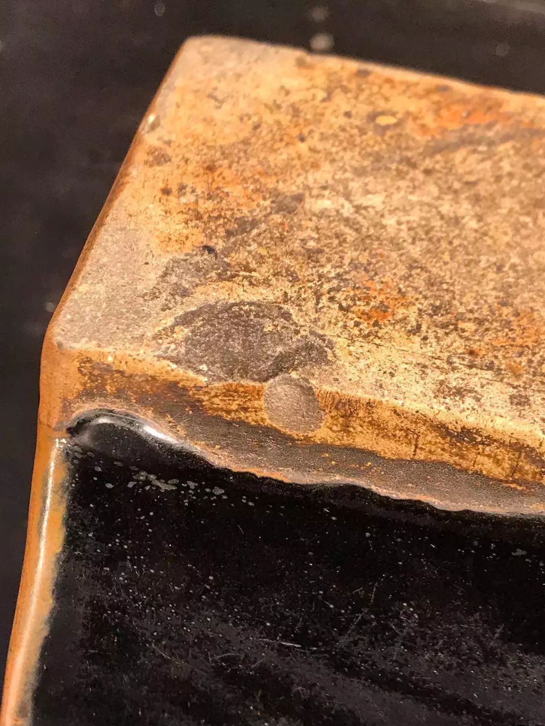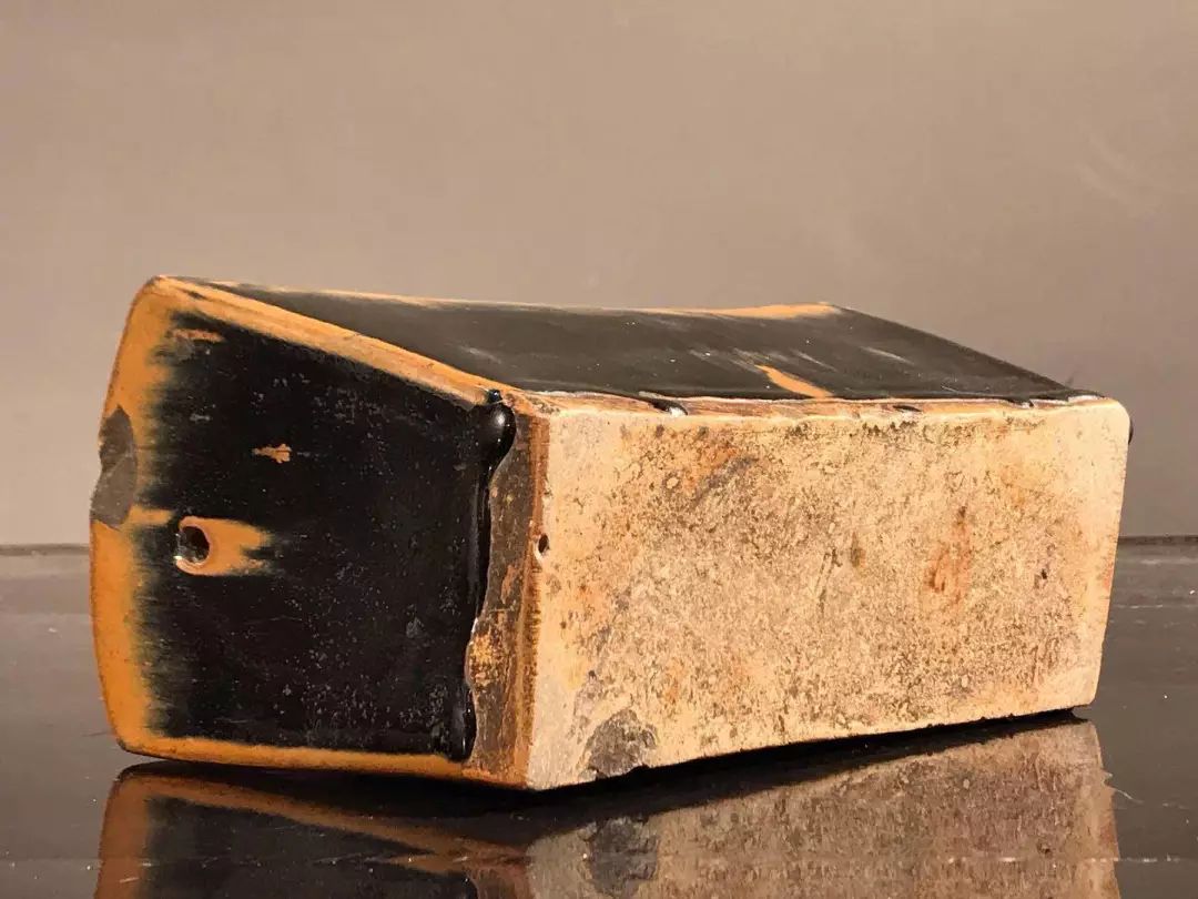 此黑釉老瓷枕除一侧上方与底部一处各有有小磕伤外,基本保存完好,无其它损伤。