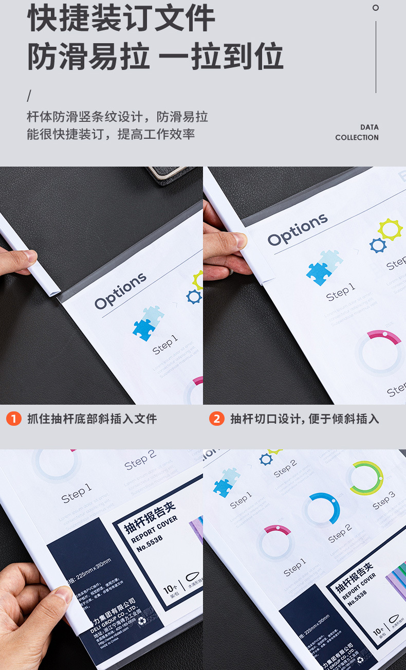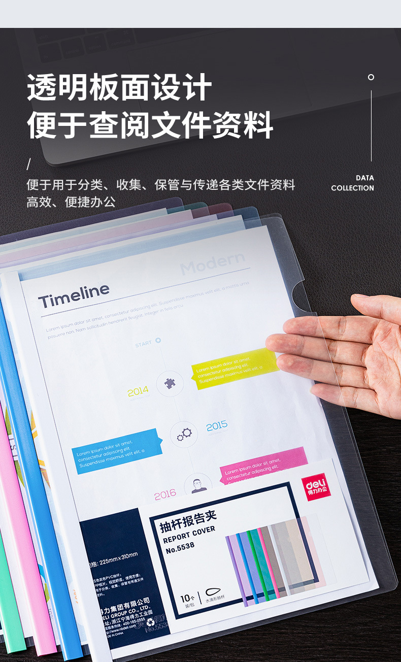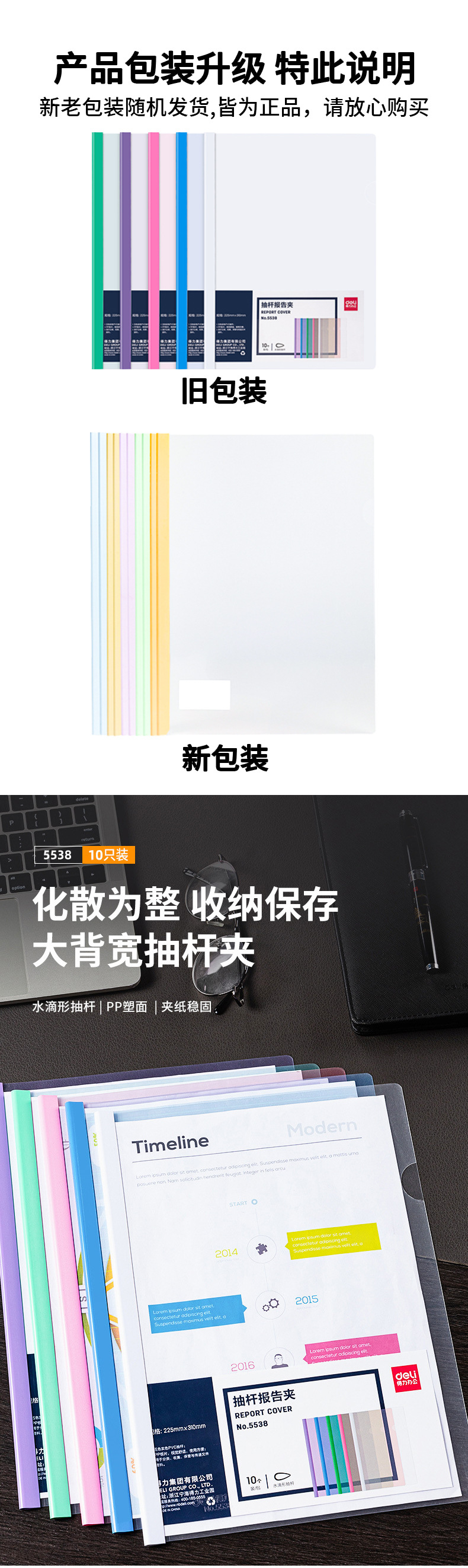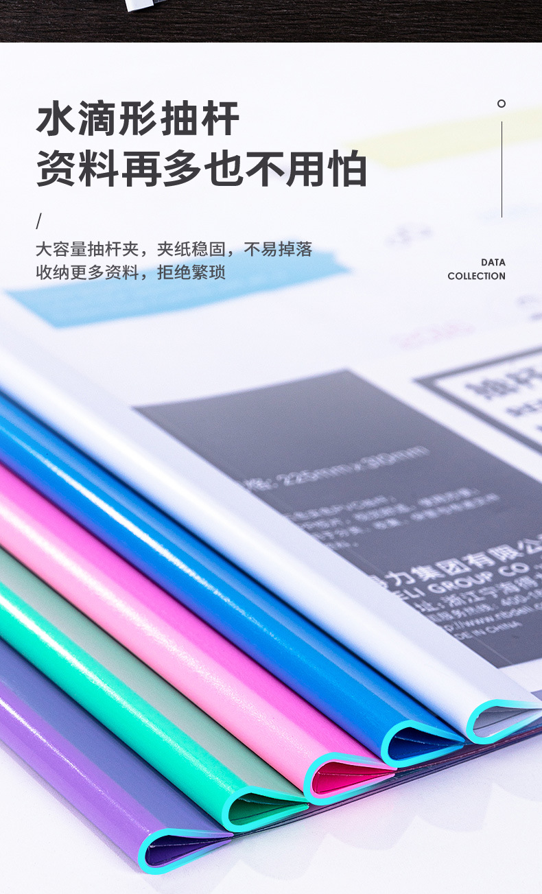 得力5538水滴时尚抽杆夹1个A4报告夹拉杆抽杆文件夹 拉杆夹资料收纳夹