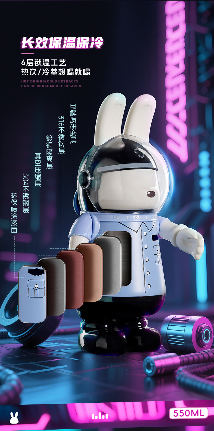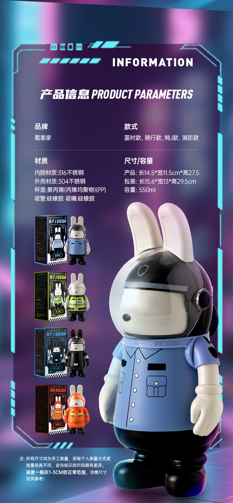 【兔子J官保温杯】可定制杯子创意儿童保温/保冷杯便携吸管喝水杯节日送礼礼品
